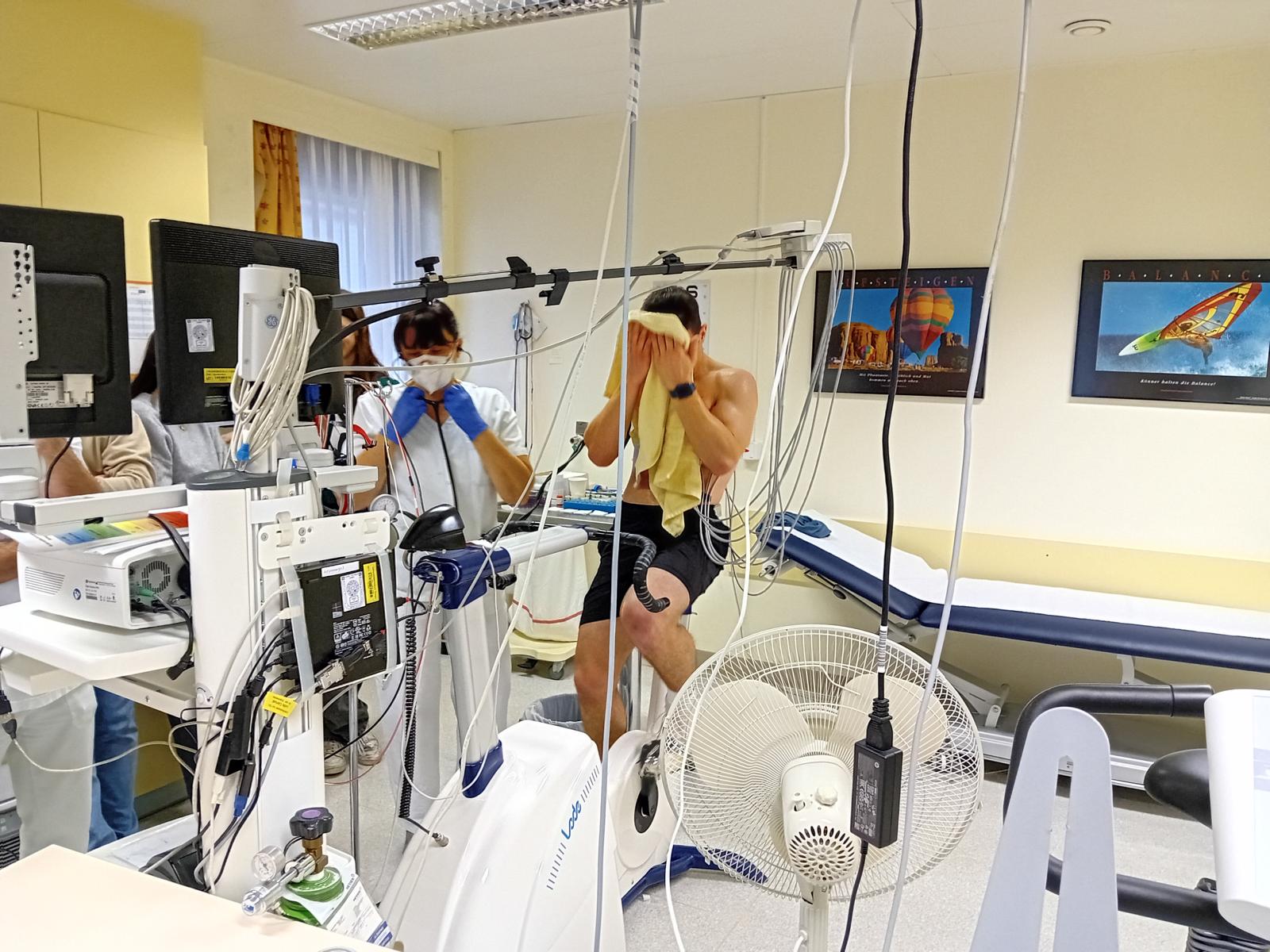 Auf den Bildern ist Laurenz Eichwalder beim Lactat Stufentest für Athleten zu sehen.