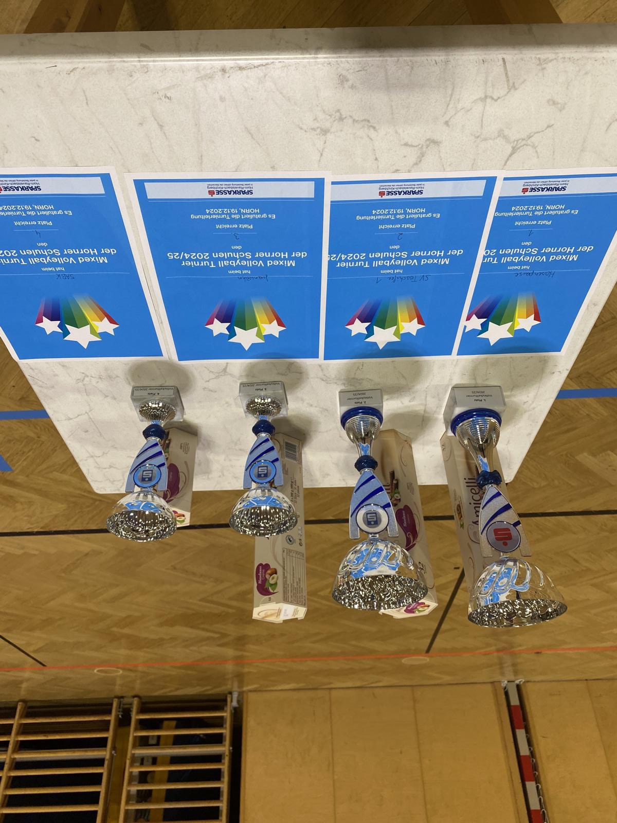 Beim Mixed Volleyballturnier der Horner Schulen zeigten die sportlichen Jugendlichen umjubelt von zahlreichen Fans, was sie können. Spannende Matches versüßten den Spielern und Zusehern den vorletzten Schultag und zur Freude des BG Horn durften auch Gym-Schüler den Siegerpokal mitnachhause nehmen.