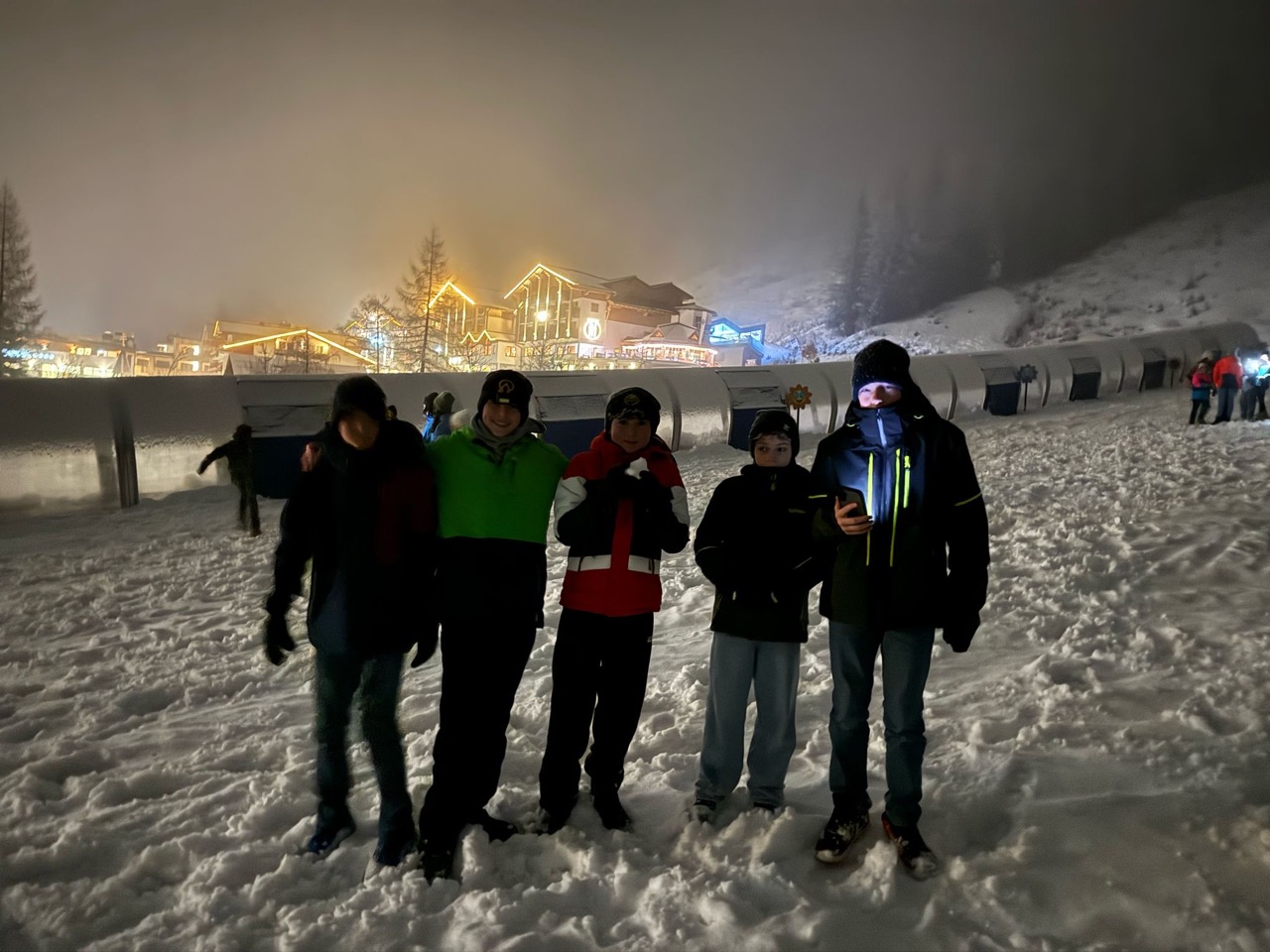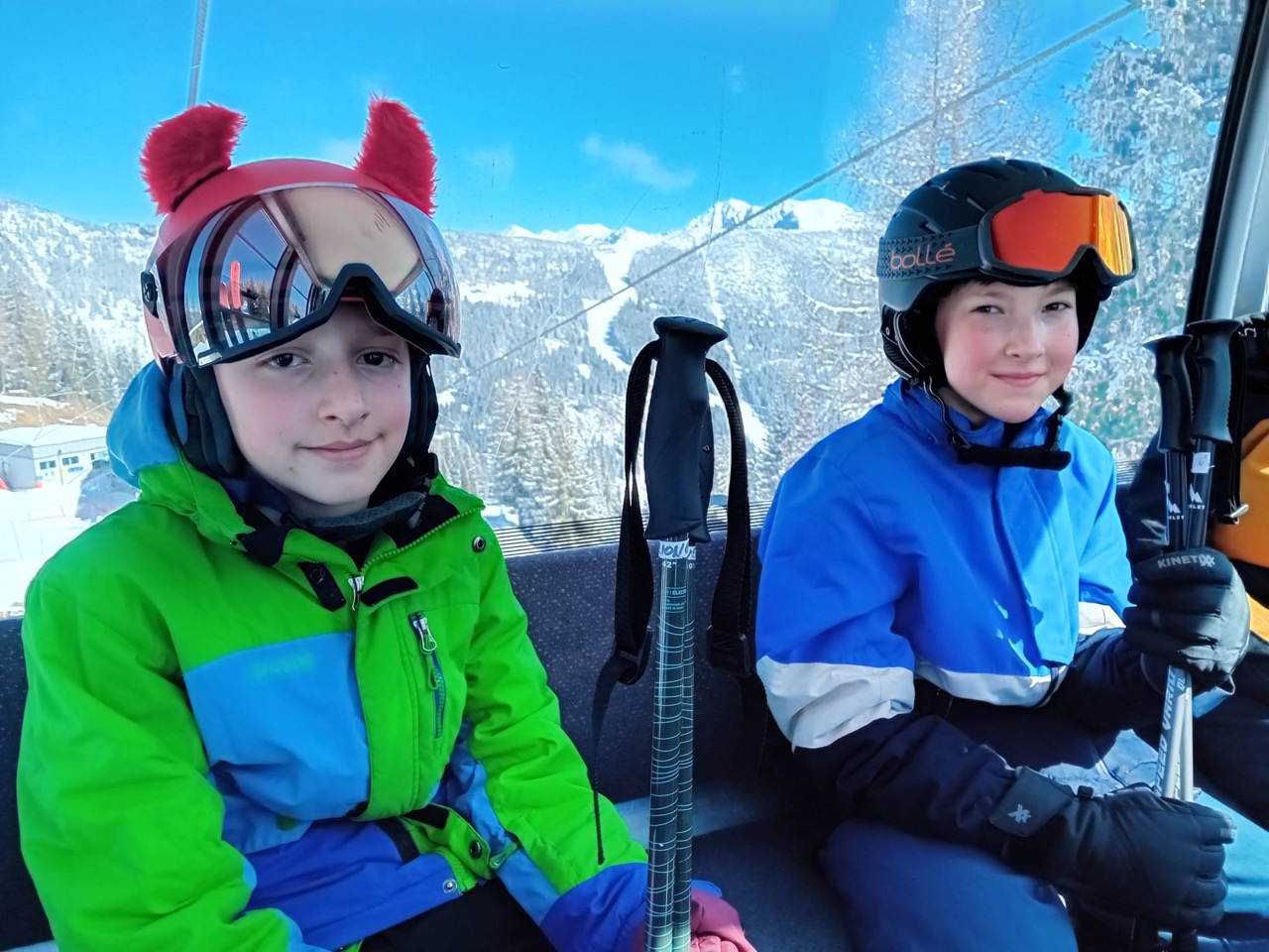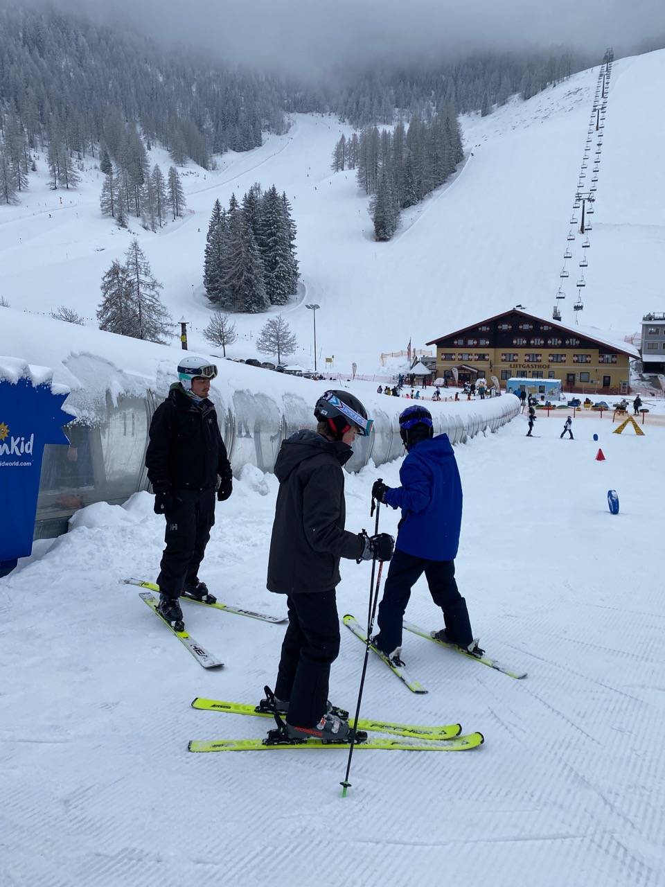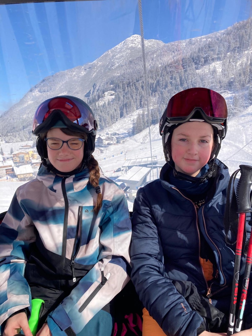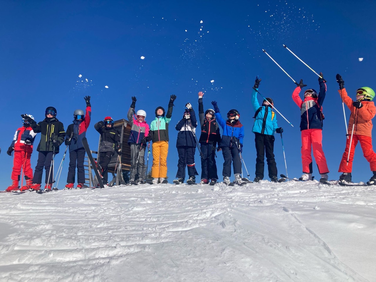 Am Dienstag wachten wir gemütlich auf und liefen zum Frühstücksraum, um unseren leeren Bauch zu füllen. Danach marschierten wir gekräftigt Richtung Ski-Berg. Nachdem wir viele blaue, rote und schwarze Strecken gefahren waren, schlenderten wir den Weg zurück zum Schneehaus, wo wir das Mittagessen sofort bekamen und kurz darauf verschlungen hatten. Nach einer weiteren Rast wanderten wir zurück zum Lift, fuhren damit hinauf und hatten viel Spaß bei der Pistenabfahrt. Nach einigen Schulfahrten durften wir auch alleine den Berg hinunterflitzen. Das Abendessen schmeckte an diesem Tag besonders gut. Nun war es endlich Zeit für die Disco. Wir tanzten, sangen und lachten. Auch ein paar Lehrer:innen fühlten sich von der Musik angezogen und machten mit.