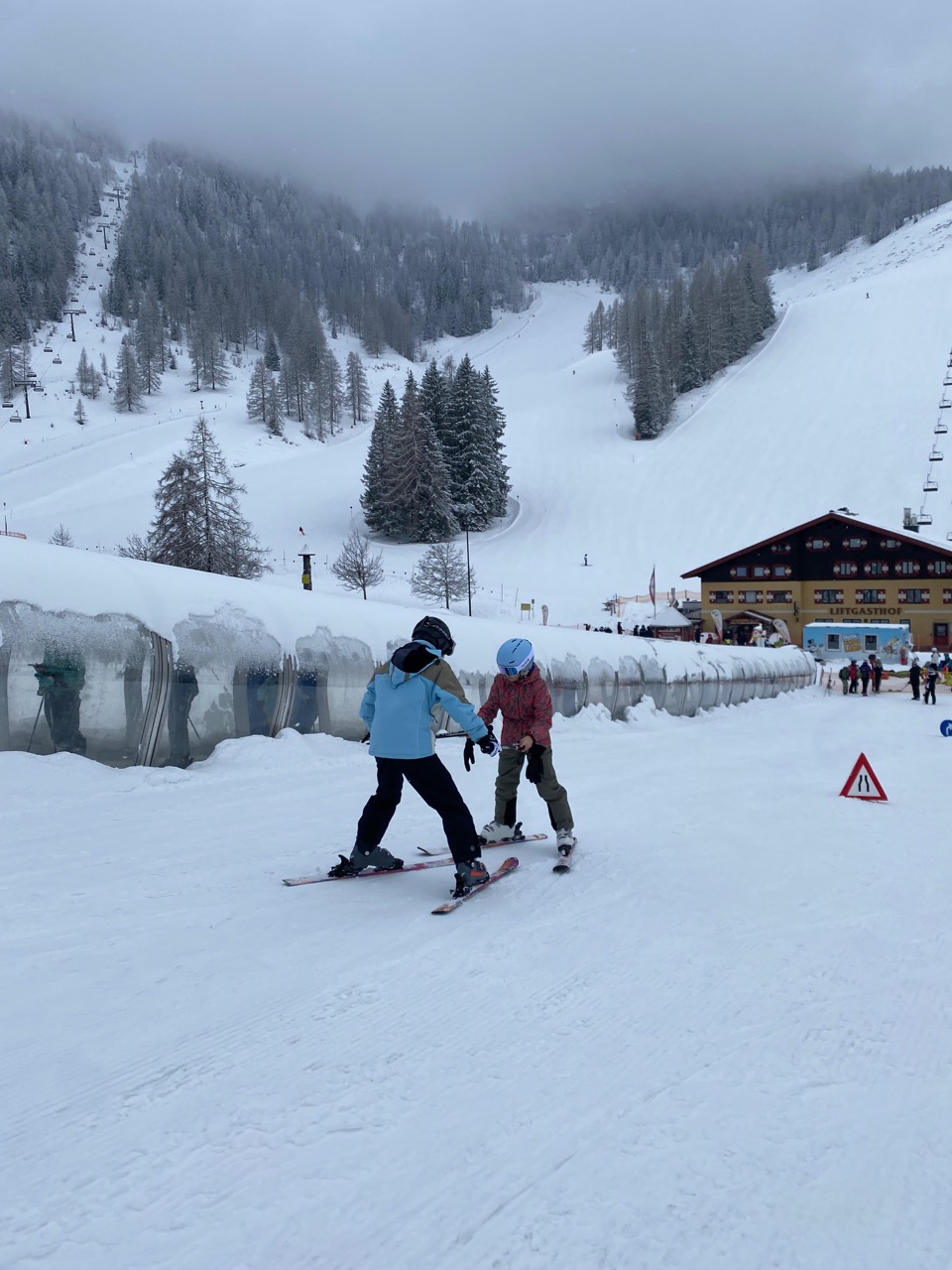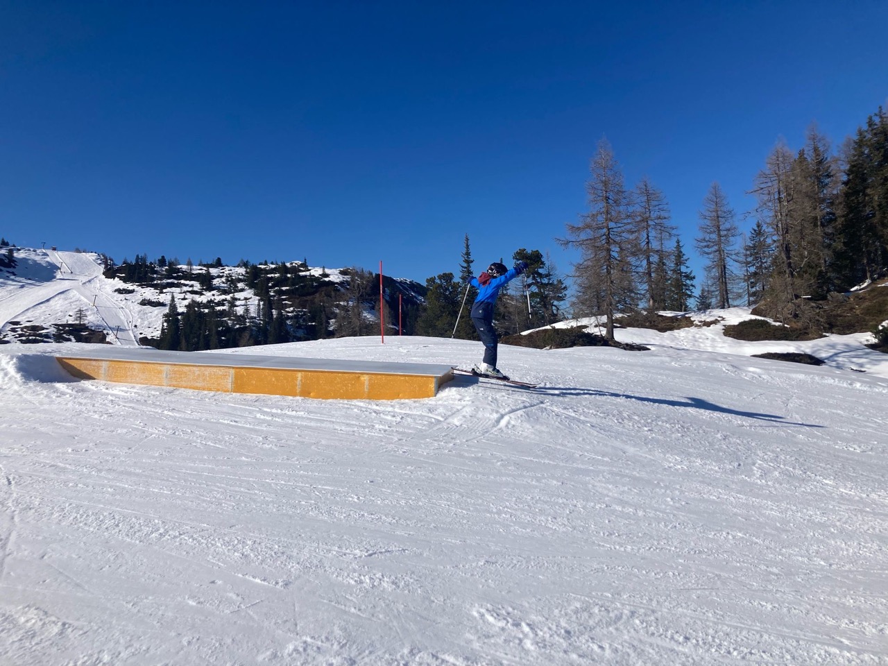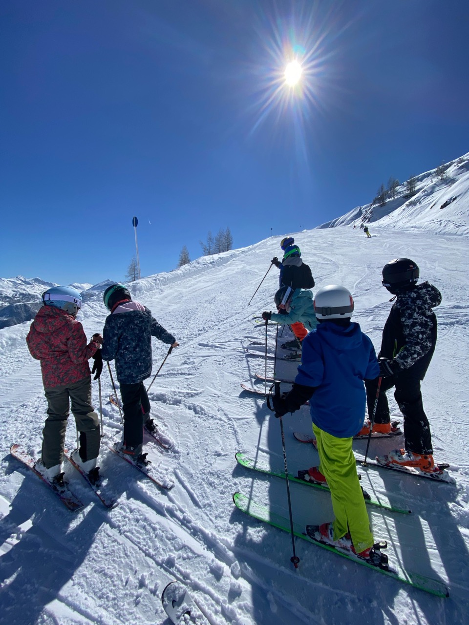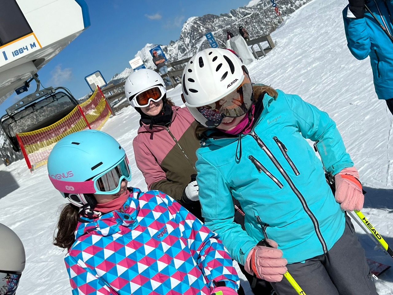 Am Dienstag wachten wir gemütlich auf und liefen zum Frühstücksraum, um unseren leeren Bauch zu füllen. Danach marschierten wir gekräftigt Richtung Ski-Berg. Nachdem wir viele blaue, rote und schwarze Strecken gefahren waren, schlenderten wir den Weg zurück zum Schneehaus, wo wir das Mittagessen sofort bekamen und kurz darauf verschlungen hatten. Nach einer weiteren Rast wanderten wir zurück zum Lift, fuhren damit hinauf und hatten viel Spaß bei der Pistenabfahrt. Nach einigen Schulfahrten durften wir auch alleine den Berg hinunterflitzen. Das Abendessen schmeckte an diesem Tag besonders gut. Nun war es endlich Zeit für die Disco. Wir tanzten, sangen und lachten. Auch ein paar Lehrer:innen fühlten sich von der Musik angezogen und machten mit.