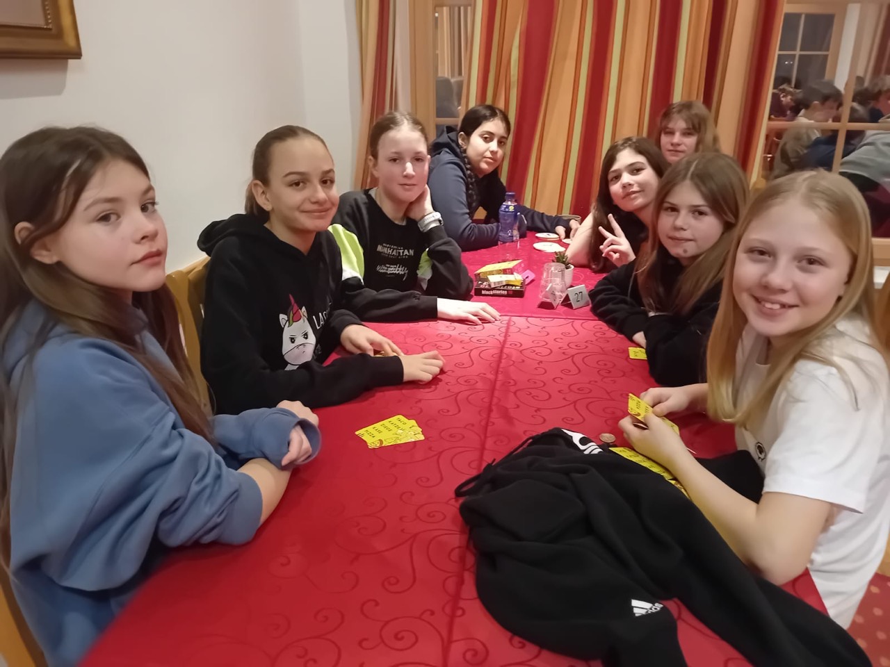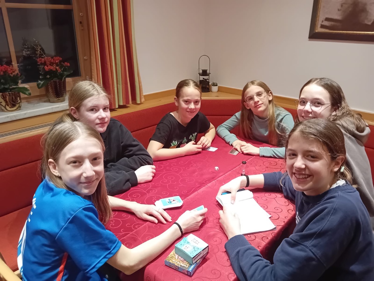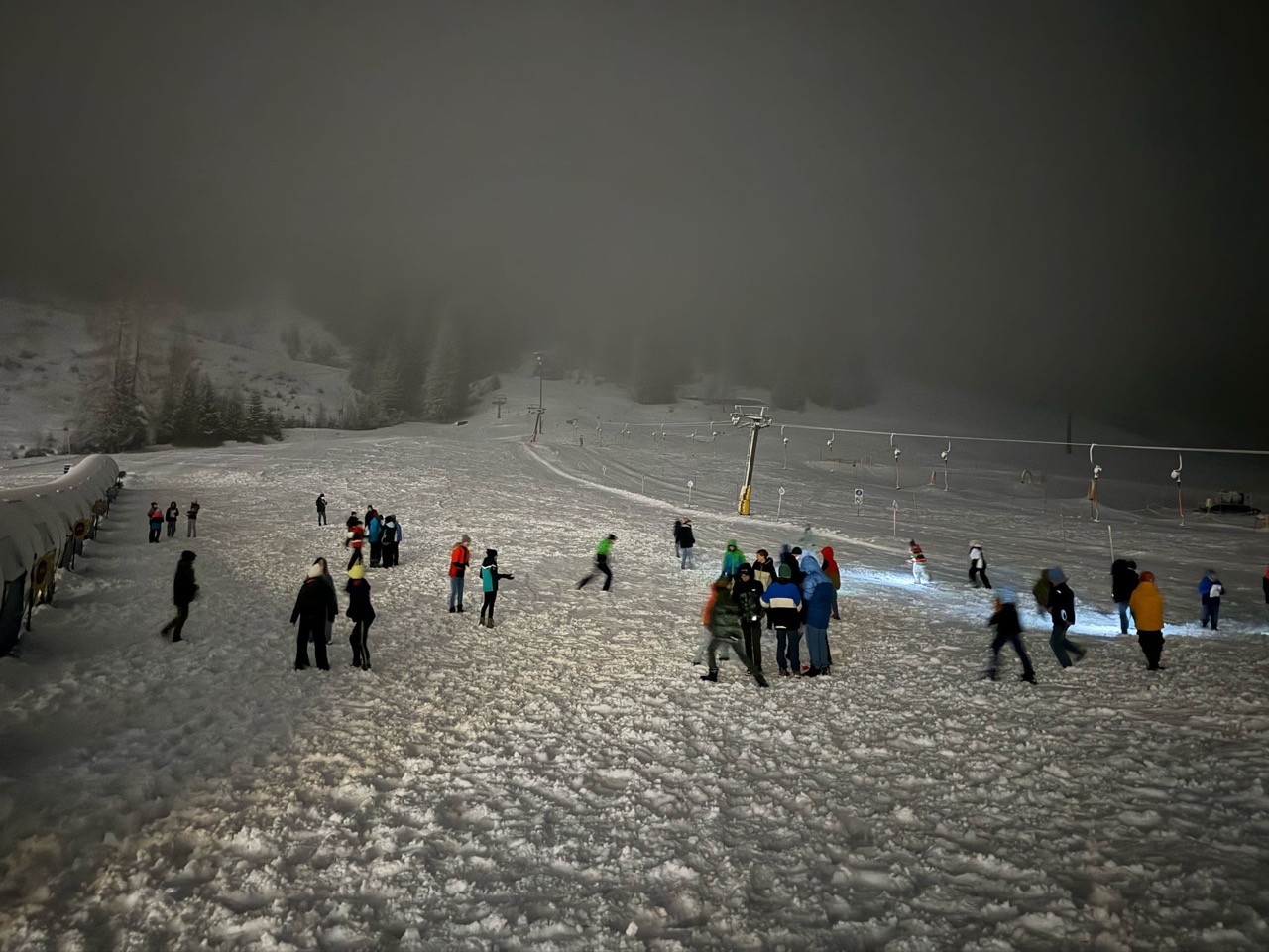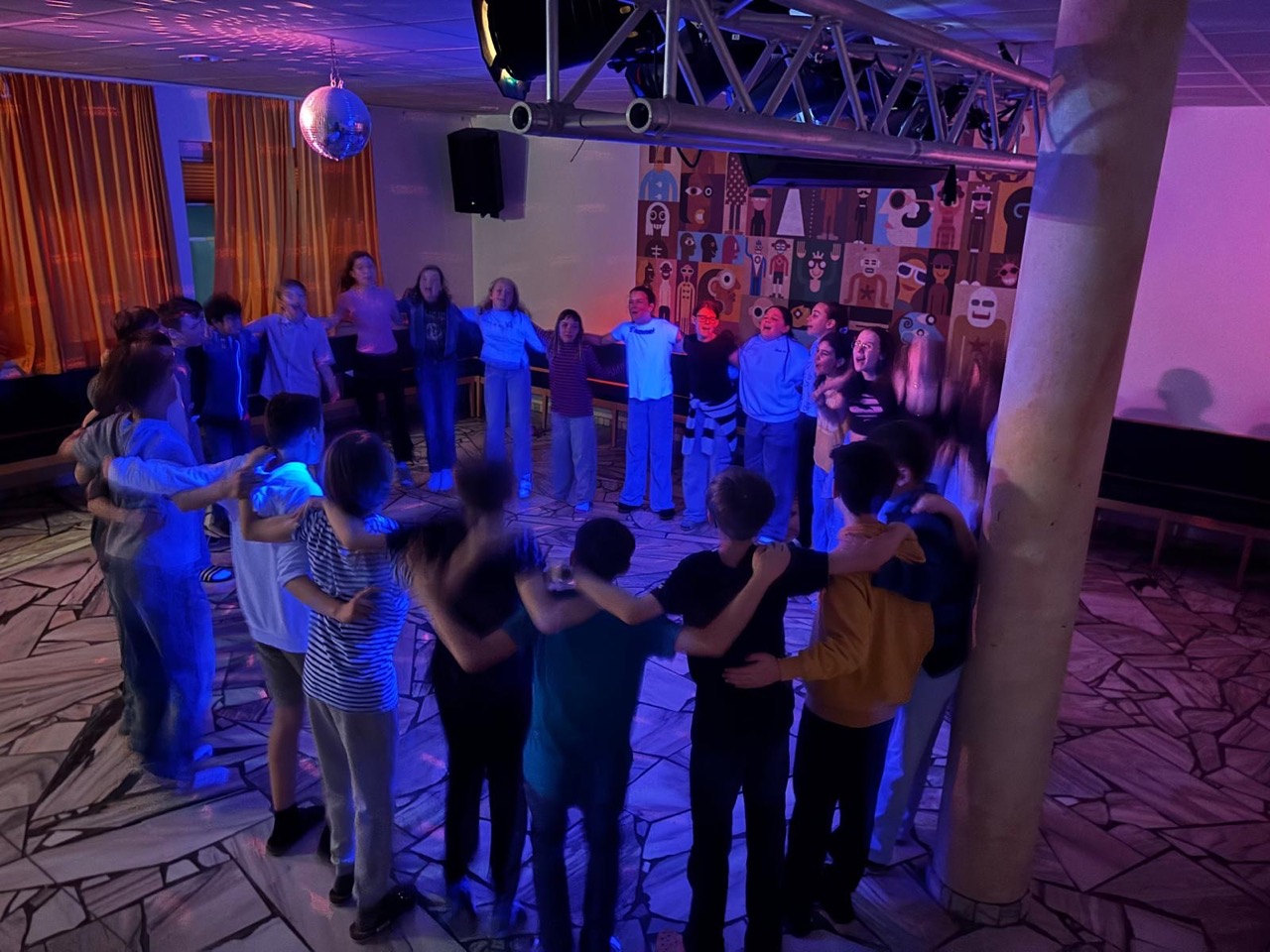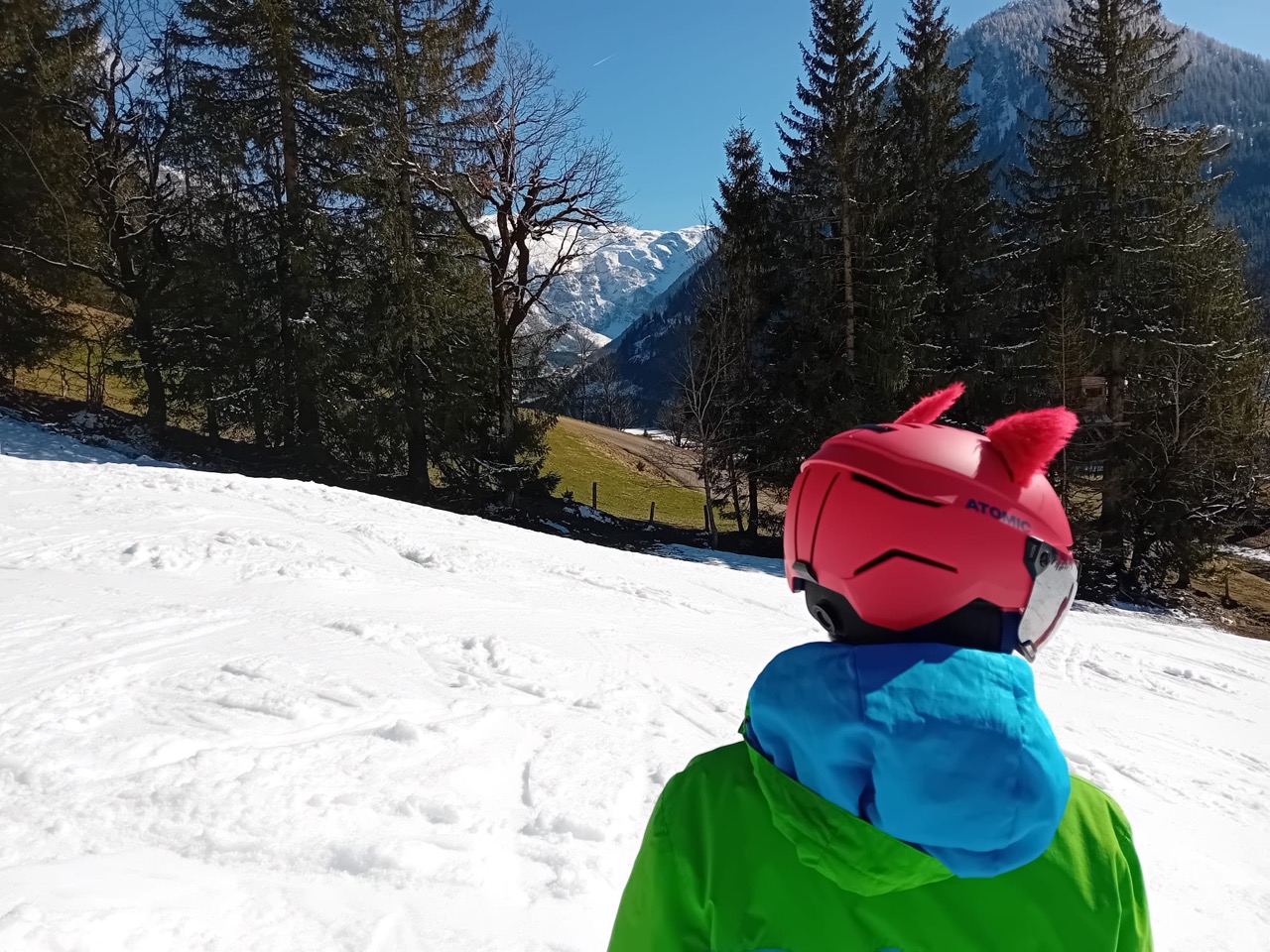 Am Dienstag wachten wir gemütlich auf und liefen zum Frühstücksraum, um unseren leeren Bauch zu füllen. Danach marschierten wir gekräftigt Richtung Ski-Berg. Nachdem wir viele blaue, rote und schwarze Strecken gefahren waren, schlenderten wir den Weg zurück zum Schneehaus, wo wir das Mittagessen sofort bekamen und kurz darauf verschlungen hatten. Nach einer weiteren Rast wanderten wir zurück zum Lift, fuhren damit hinauf und hatten viel Spaß bei der Pistenabfahrt. Nach einigen Schulfahrten durften wir auch alleine den Berg hinunterflitzen. Das Abendessen schmeckte an diesem Tag besonders gut. Nun war es endlich Zeit für die Disco. Wir tanzten, sangen und lachten. Auch ein paar Lehrer:innen fühlten sich von der Musik angezogen und machten mit.
