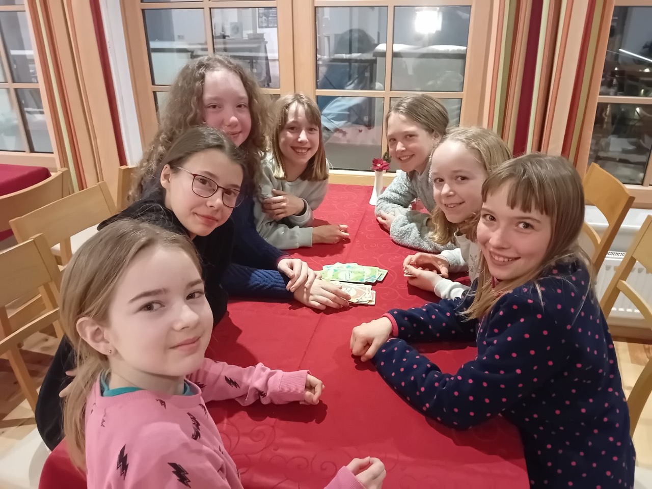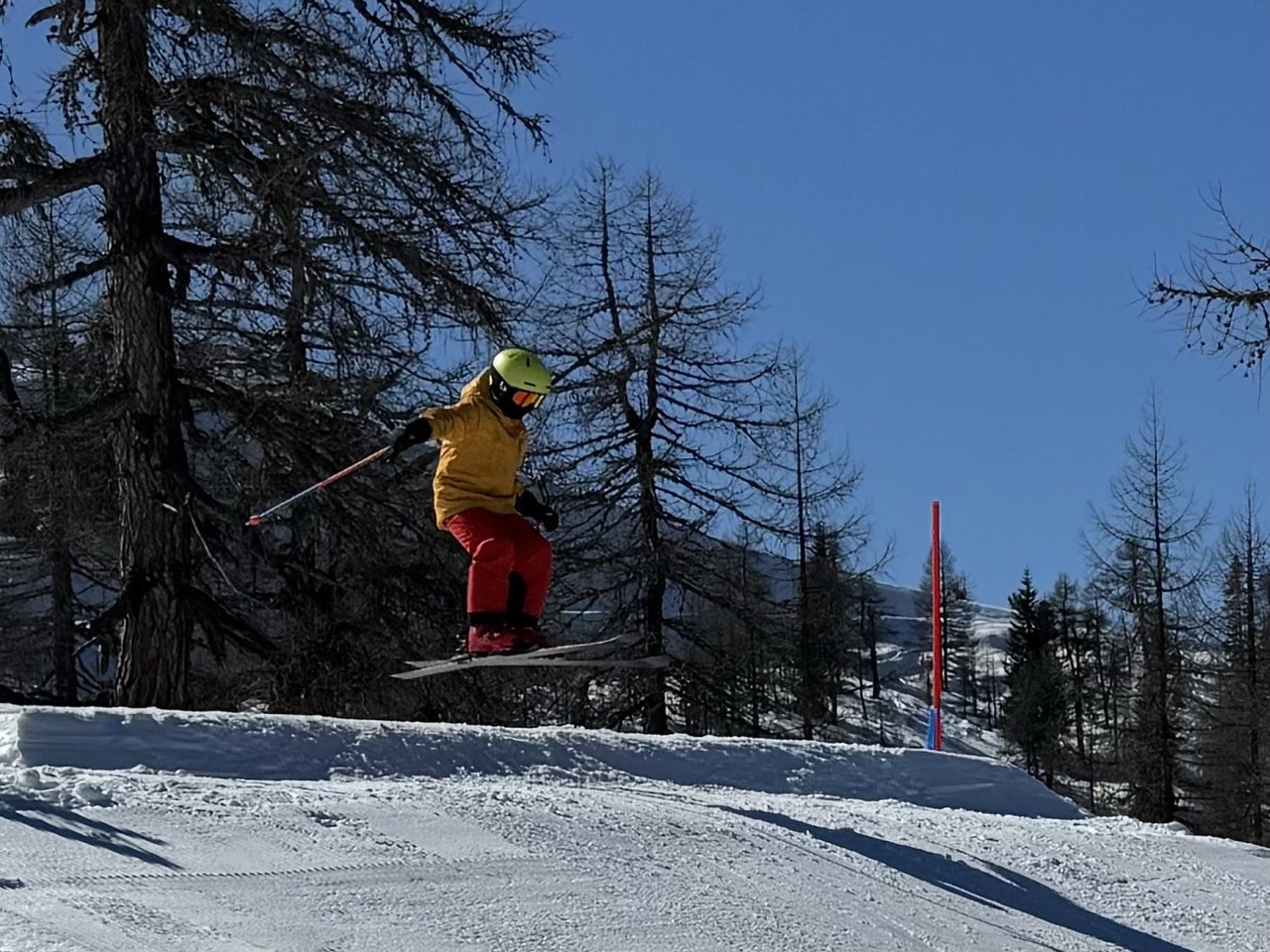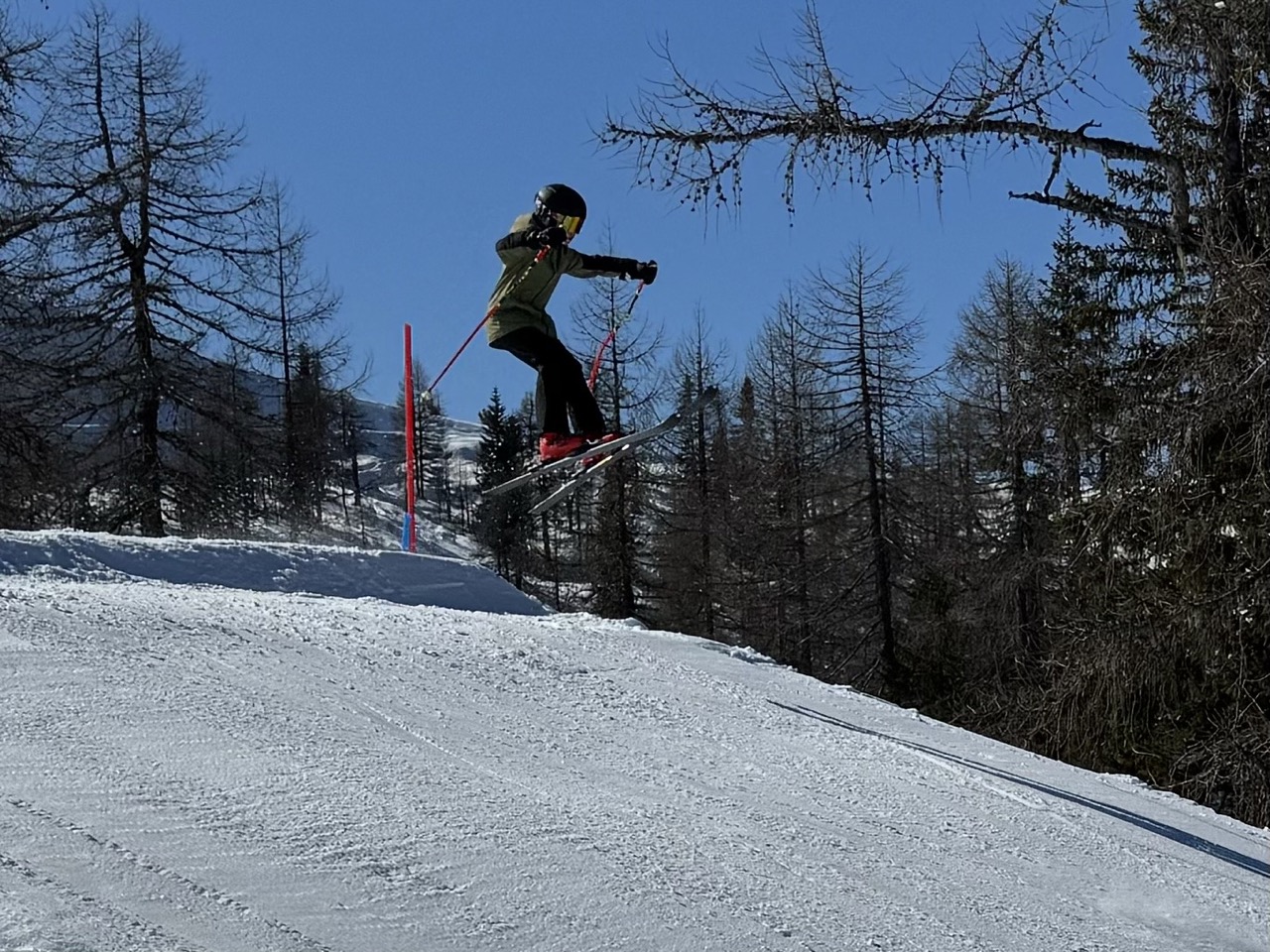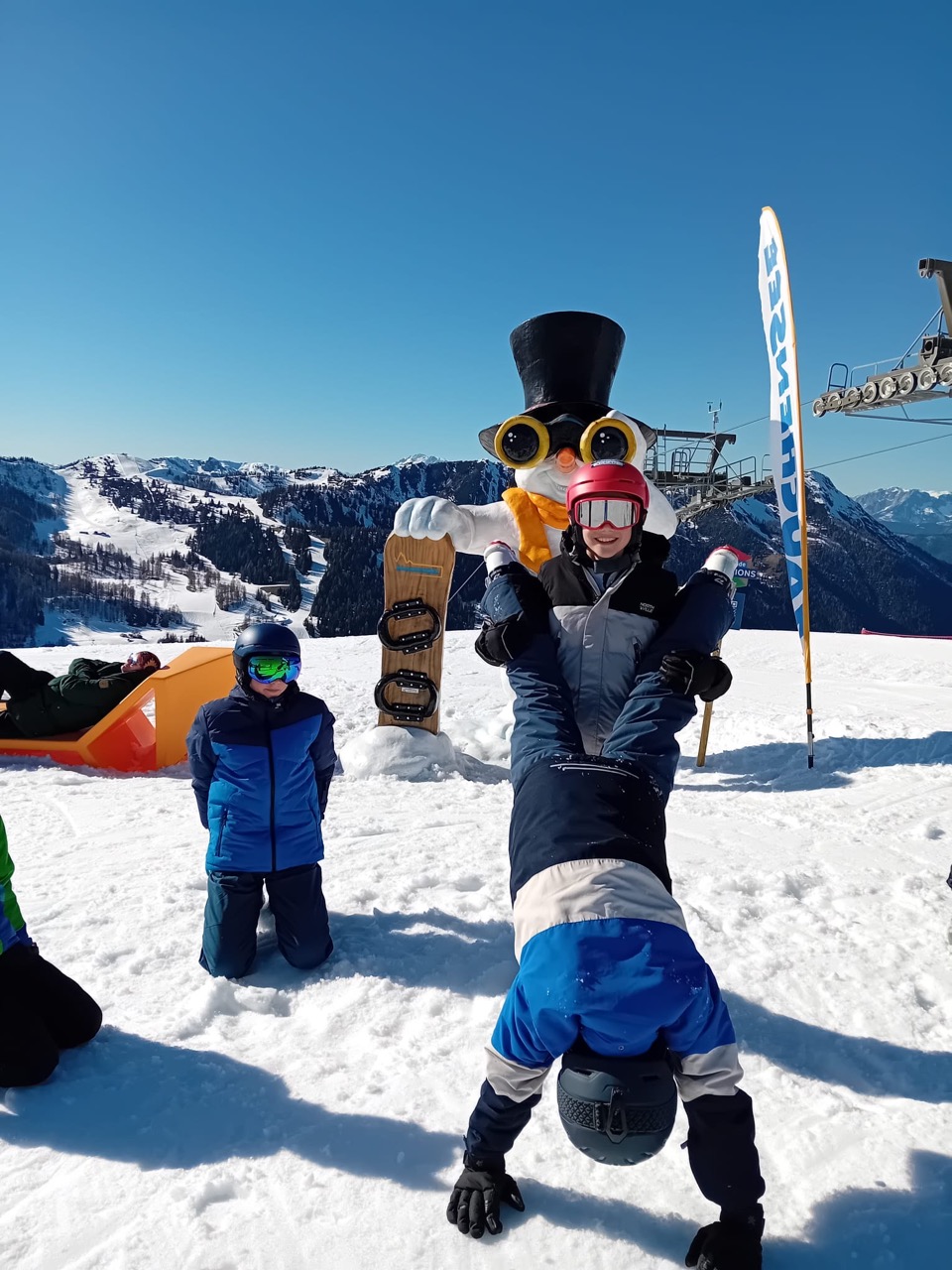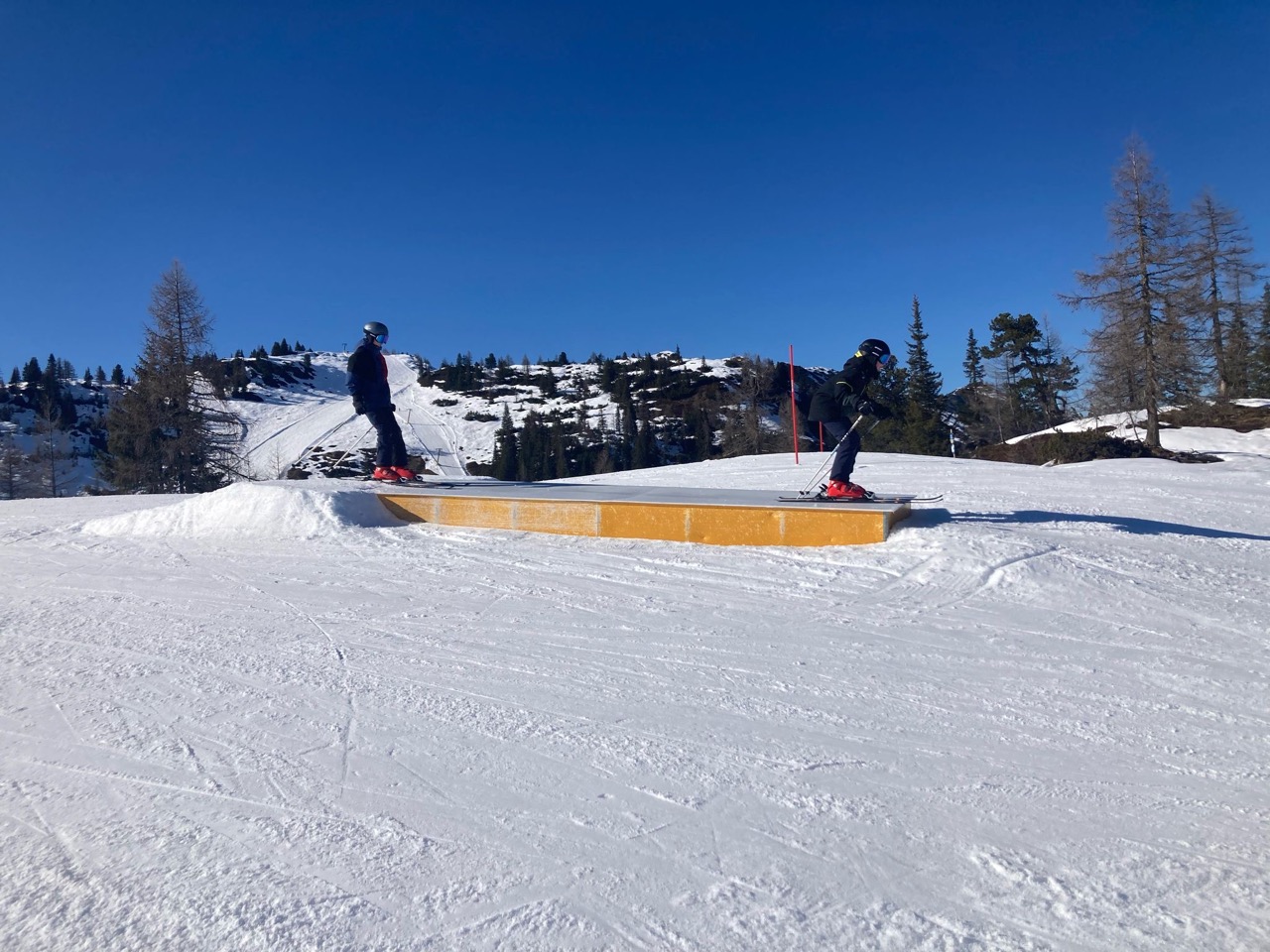Am Dienstag wachten wir gemütlich auf und liefen zum Frühstücksraum, um unseren leeren Bauch zu füllen. Danach marschierten wir gekräftigt Richtung Ski-Berg. Nachdem wir viele blaue, rote und schwarze Strecken gefahren waren, schlenderten wir den Weg zurück zum Schneehaus, wo wir das Mittagessen sofort bekamen und kurz darauf verschlungen hatten. Nach einer weiteren Rast wanderten wir zurück zum Lift, fuhren damit hinauf und hatten viel Spaß bei der Pistenabfahrt. Nach einigen Schulfahrten durften wir auch alleine den Berg hinunterflitzen. Das Abendessen schmeckte an diesem Tag besonders gut. Nun war es endlich Zeit für die Disco. Wir tanzten, sangen und lachten. Auch ein paar Lehrer:innen fühlten sich von der Musik angezogen und machten mit.