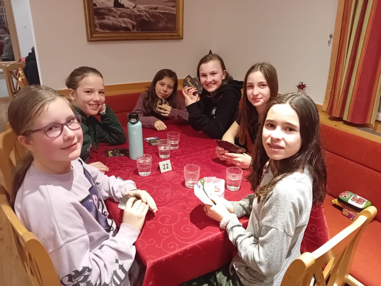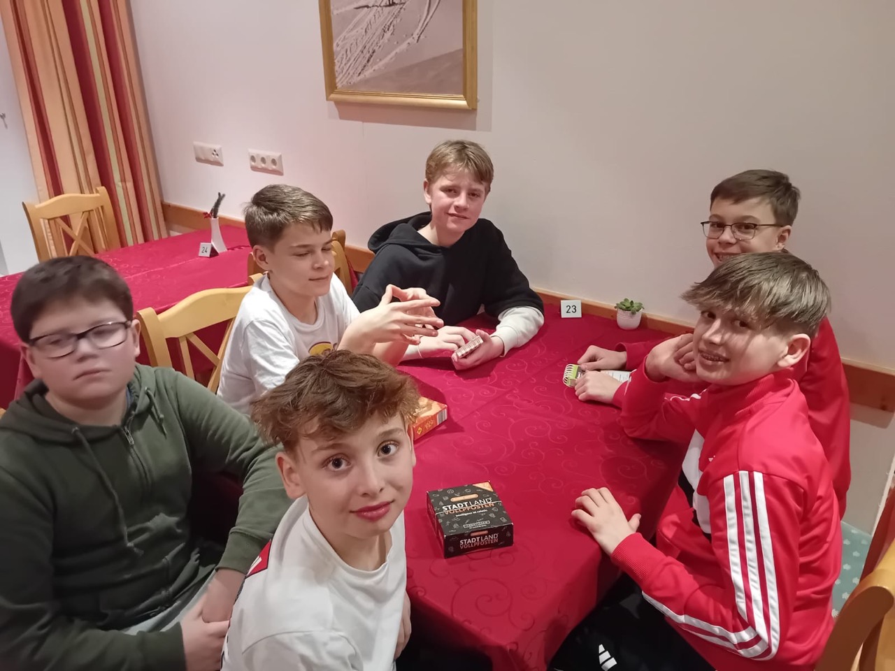 Der Donnerstag verging wie im Flug, nach dem gut schmeckenden Frühstück war es Zeit für die Piste. Mal wieder fuhren wir viele Schulfahrten, aber auch viel frei und durch einige Fun-Parks. Der Vormittag war großartig und das Mittagessen ebenso. Nach der letzten Mittagsrast am Zauchensee war es wieder Zeit zum Skifahren. Als der Abend anbrach, organisierten die Lehrer:innen ein Jungs gegen Mädchen-Turnier. Diese Veranstaltung war extrem lustig und spannend. Die Jungs konnten den Wettbewerb für sich entscheiden. In der letzten Nacht schauten sich einige in ihren Zimmern das Fußballmatch Österreich gegen Serbien an. Das Spiel endete leider unerwünscht 1:1.