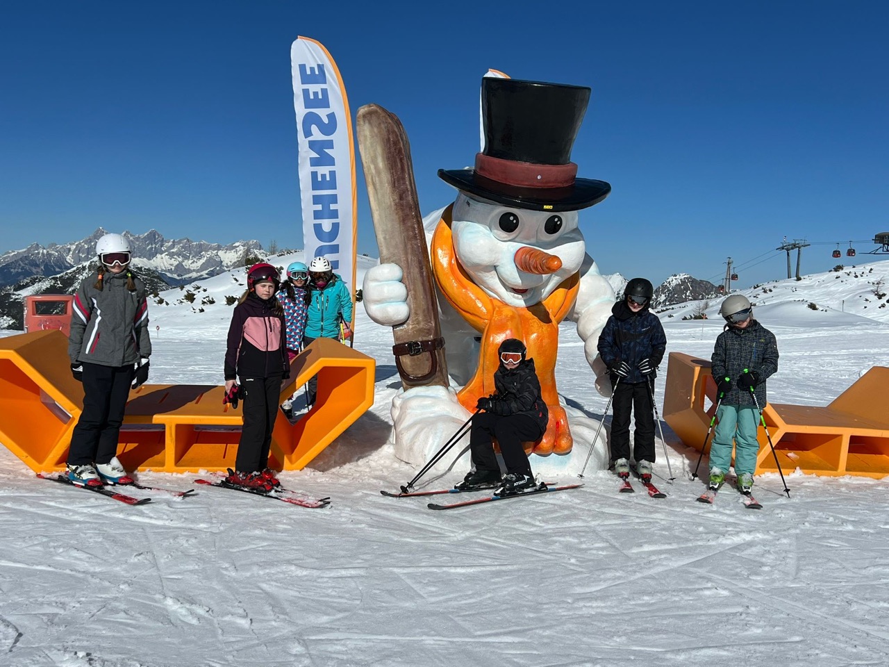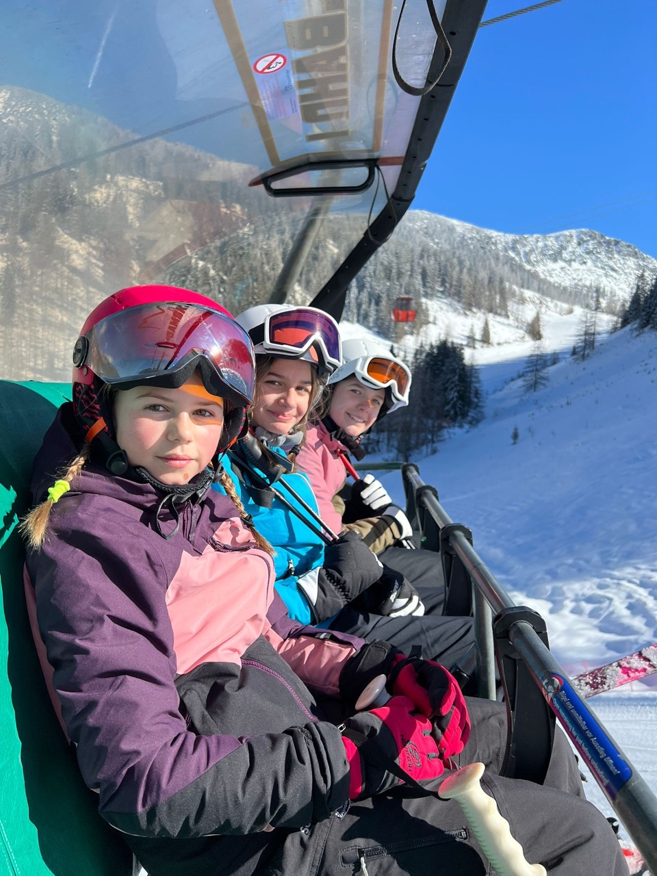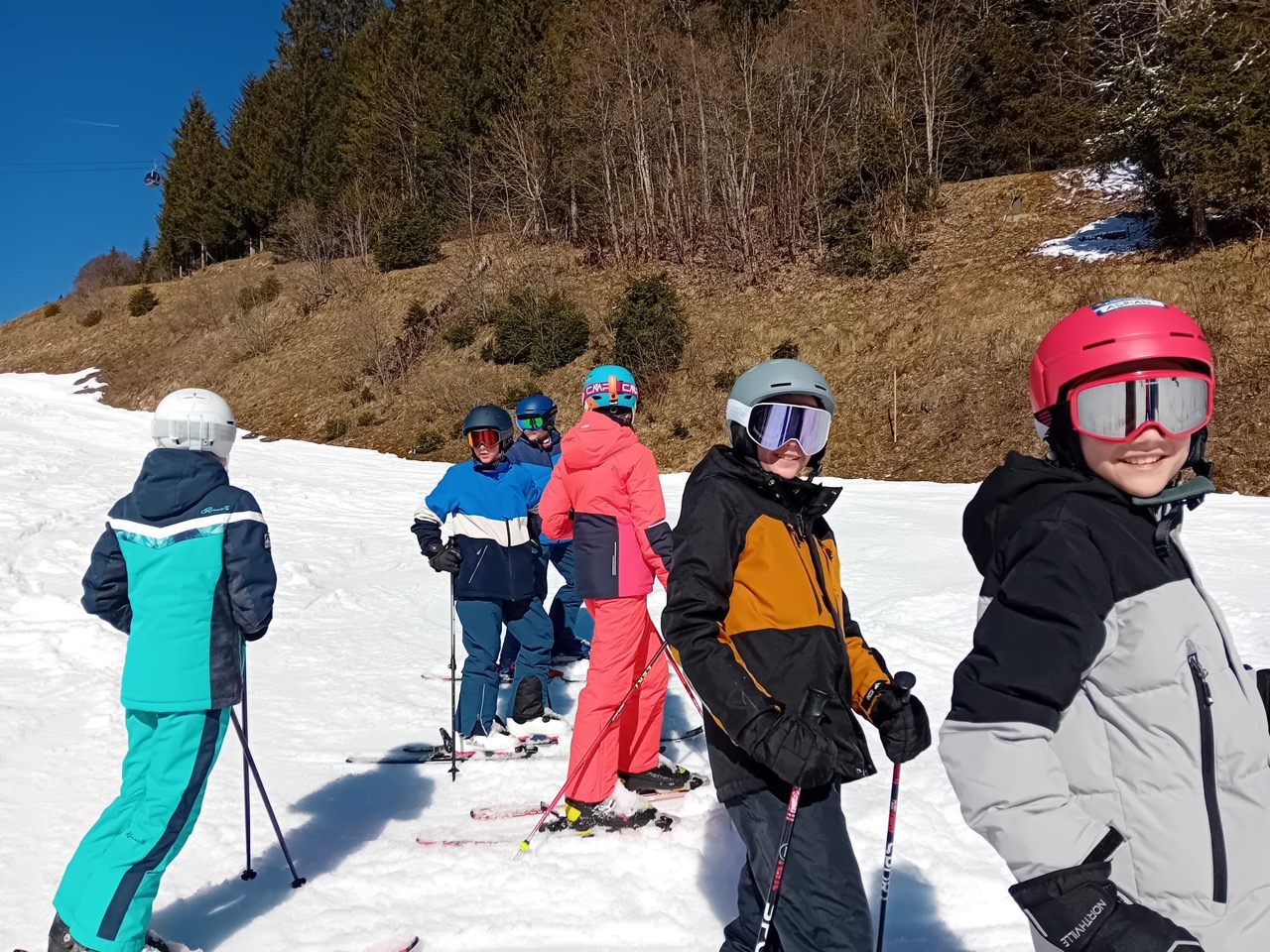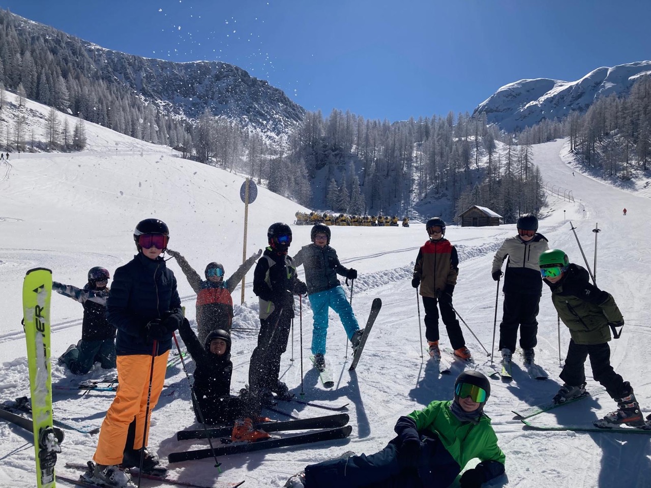 Endlich war es so weit! Wir hatten schon das ganze Schuljahr auf diese besondere Woche gewartet. Naja, eigentlich waren es nur fünf Tage, aber trotzdem, diese waren legendär! Schon am Morgen der Abreise kribbelte es vor Aufregung in unseren Bäuchen. Die fünfstündige Fahrt mit einer kurzen Rast beim Landzeit-Restaurant Voralpenkreuz verging wie im Flug. Voller Freude kamen wir am Sonntag um zirka 16:00 Uhr in der Unterkunft ,,Schneehaus“ an. Dort luden wir unsere Gepäckstücke und Ski aus. Danach machten wir uns auf den Weg in unsere Zimmer, welche sehr schön und geräumig waren. Schließlich war es Zeit für das Abendessen. Anschließend spielten wir ein Pistenregelquiz. Danach war es Zeit, unsere Zimmer aufzuräumen, da die Lehrer:innen Zimmerkontrollen durchführten.
