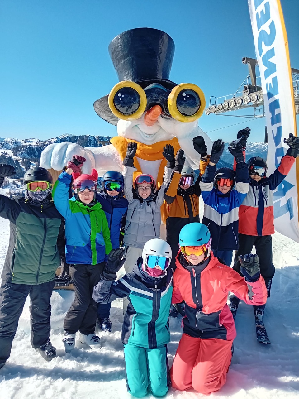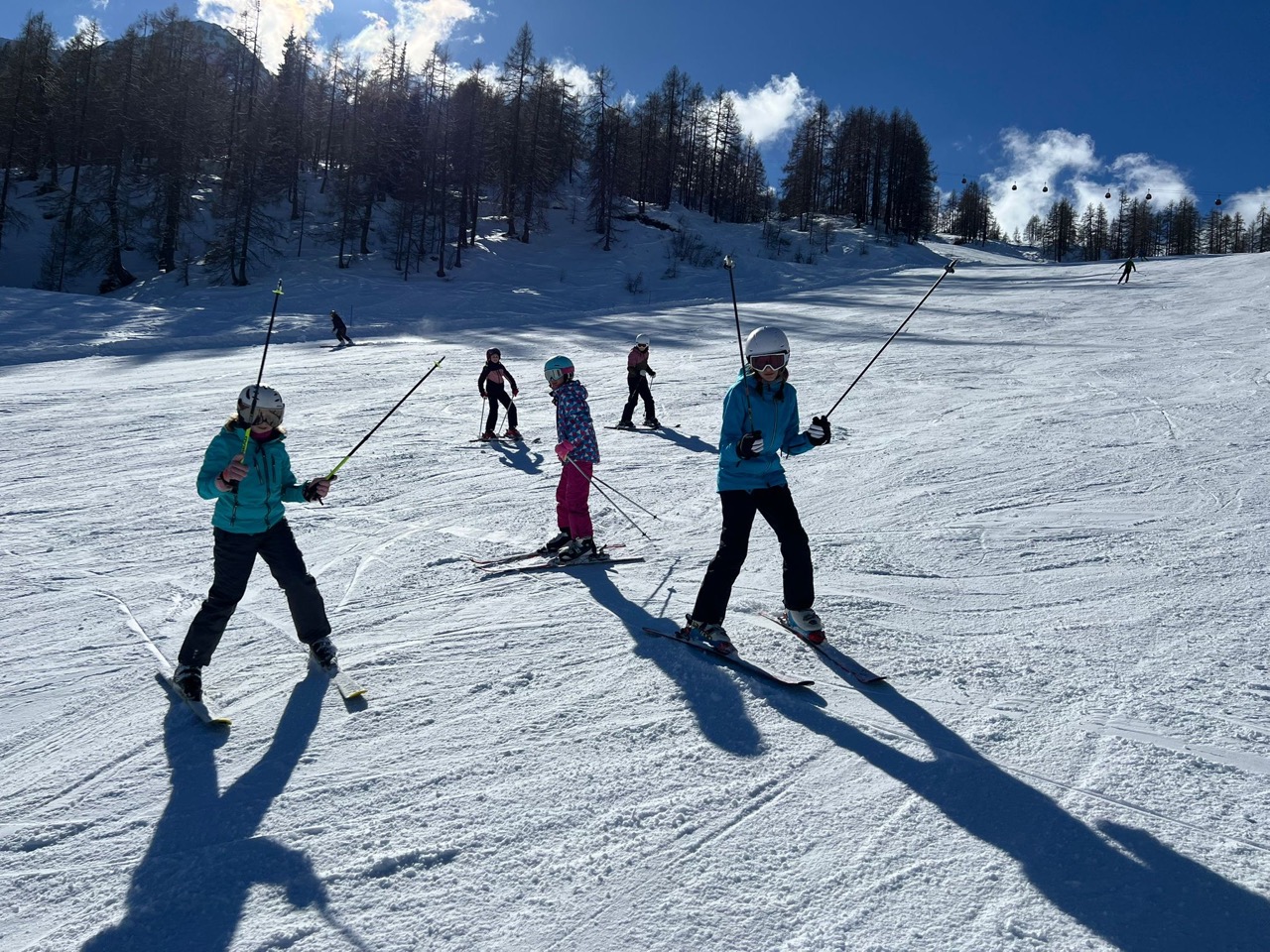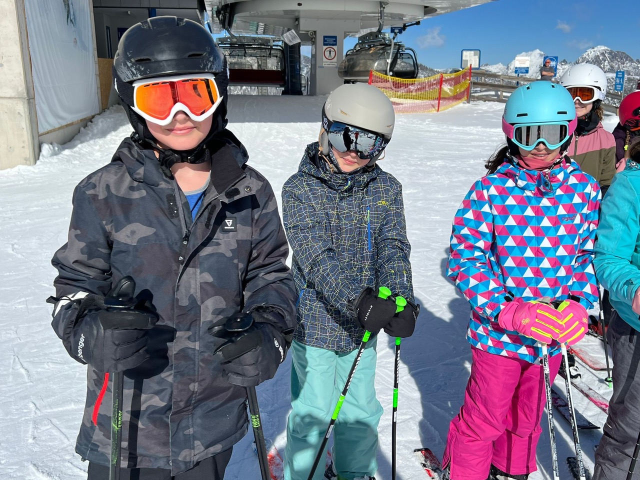 Endlich war es so weit! Wir hatten schon das ganze Schuljahr auf diese besondere Woche gewartet. Naja, eigentlich waren es nur fünf Tage, aber trotzdem, diese waren legendär! Schon am Morgen der Abreise kribbelte es vor Aufregung in unseren Bäuchen. Die fünfstündige Fahrt mit einer kurzen Rast beim Landzeit-Restaurant Voralpenkreuz verging wie im Flug. Voller Freude kamen wir am Sonntag um zirka 16:00 Uhr in der Unterkunft ,,Schneehaus“ an. Dort luden wir unsere Gepäckstücke und Ski aus. Danach machten wir uns auf den Weg in unsere Zimmer, welche sehr schön und geräumig waren. Schließlich war es Zeit für das Abendessen. Anschließend spielten wir ein Pistenregelquiz. Danach war es Zeit, unsere Zimmer aufzuräumen, da die Lehrer:innen Zimmerkontrollen durchführten.