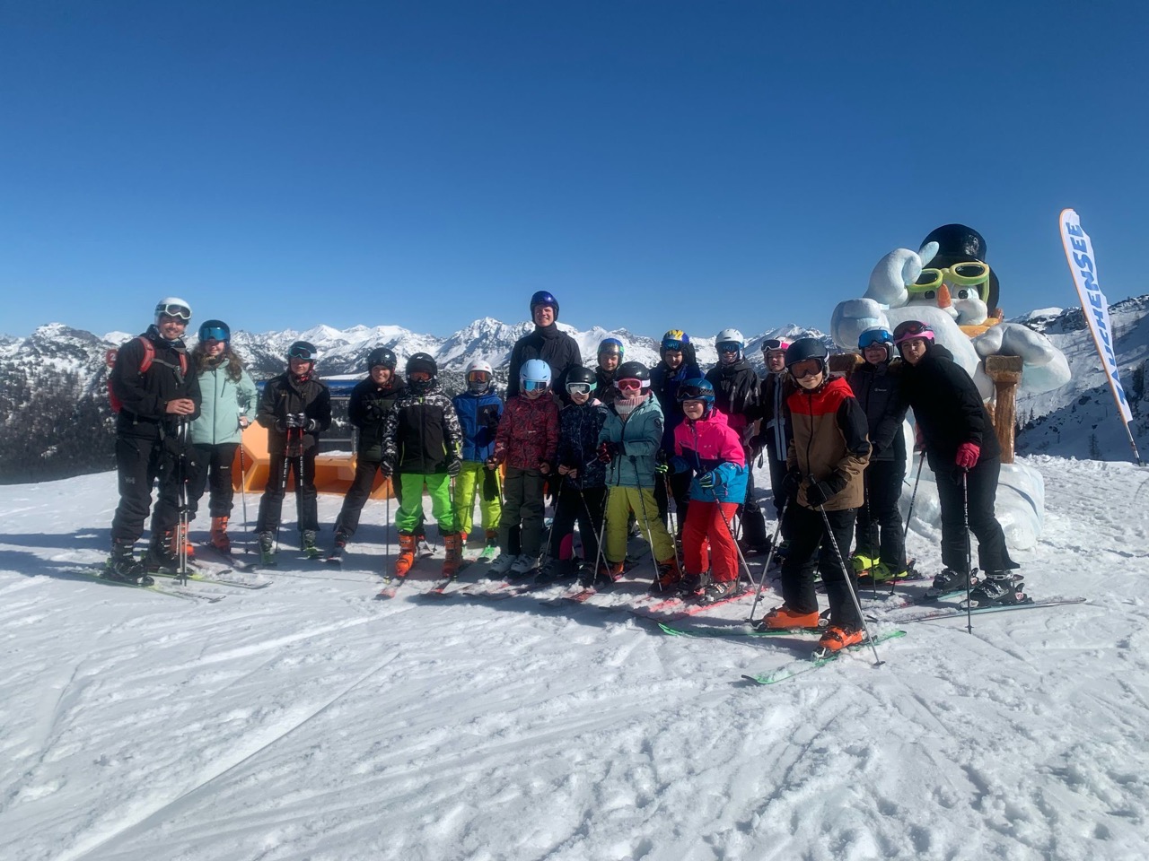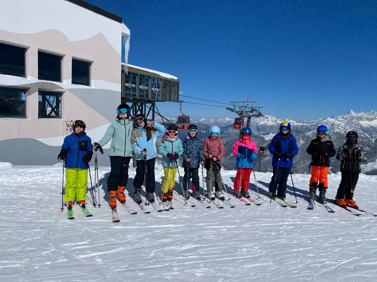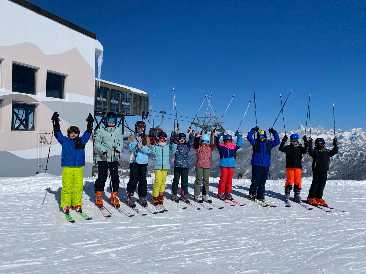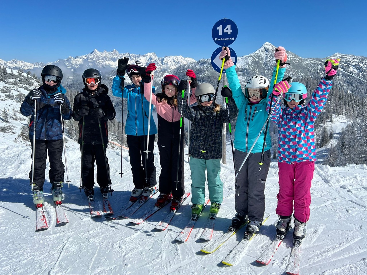 Endlich war es so weit! Wir hatten schon das ganze Schuljahr auf diese besondere Woche gewartet. Naja, eigentlich waren es nur fünf Tage, aber trotzdem, diese waren legendär! Schon am Morgen der Abreise kribbelte es vor Aufregung in unseren Bäuchen. Die fünfstündige Fahrt mit einer kurzen Rast beim Landzeit-Restaurant Voralpenkreuz verging wie im Flug. Voller Freude kamen wir am Sonntag um zirka 16:00 Uhr in der Unterkunft ,,Schneehaus“ an. Dort luden wir unsere Gepäckstücke und Ski aus. Danach machten wir uns auf den Weg in unsere Zimmer, welche sehr schön und geräumig waren. Schließlich war es Zeit für das Abendessen. Anschließend spielten wir ein Pistenregelquiz. Danach war es Zeit, unsere Zimmer aufzuräumen, da die Lehrer:innen Zimmerkontrollen durchführten.