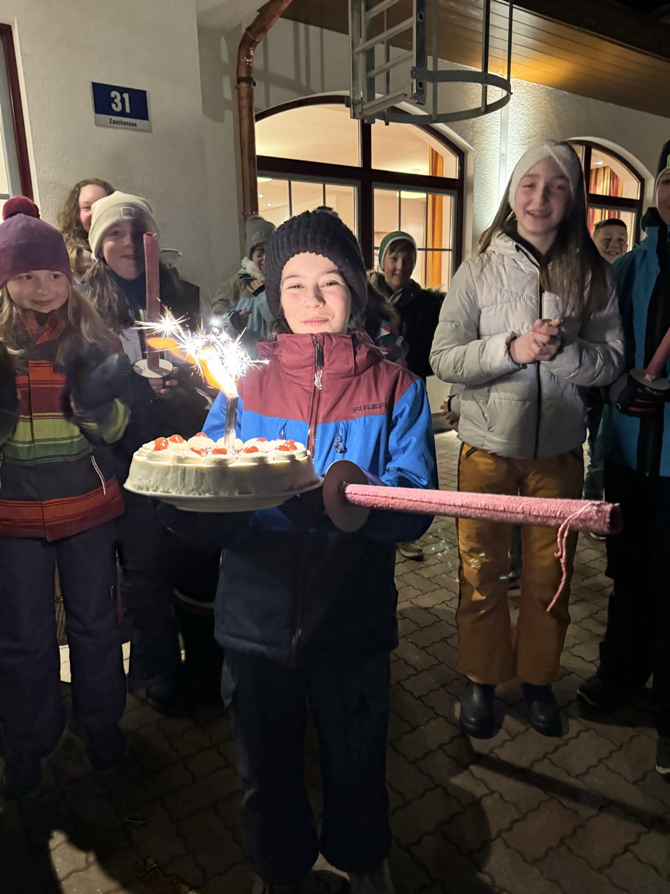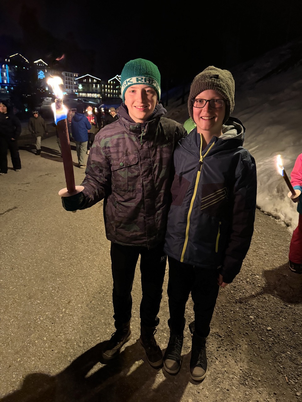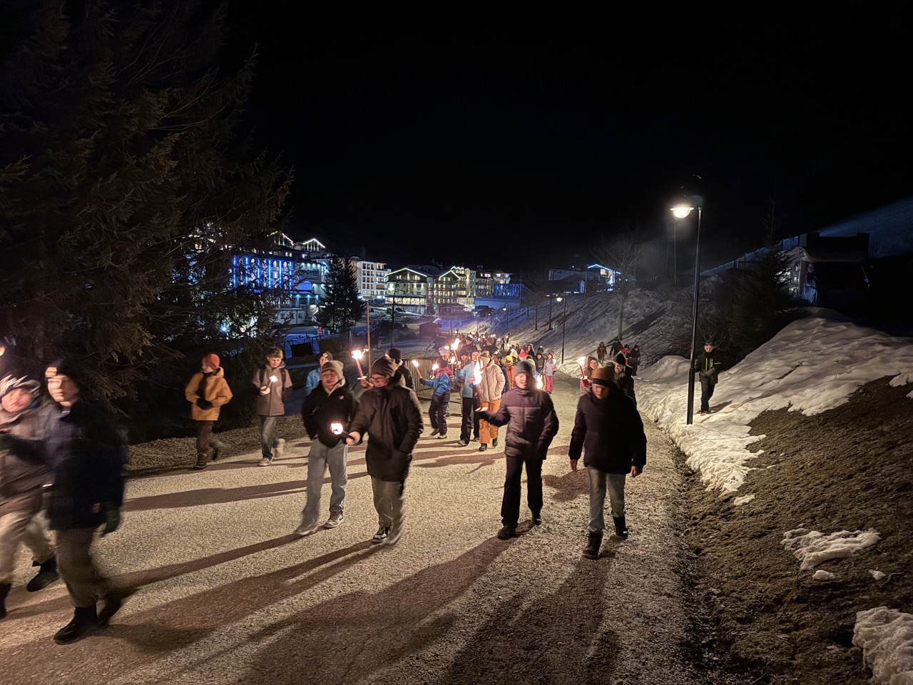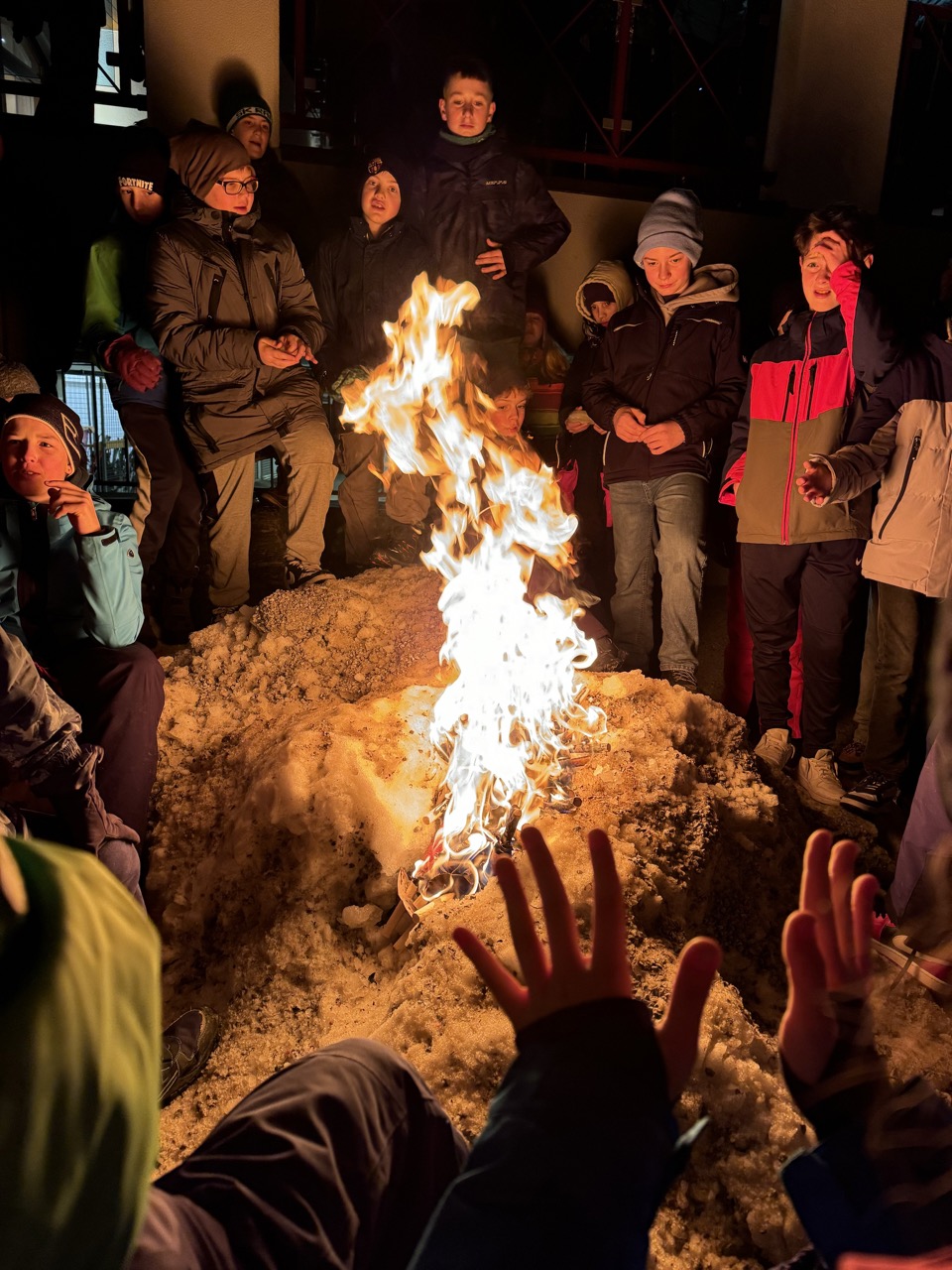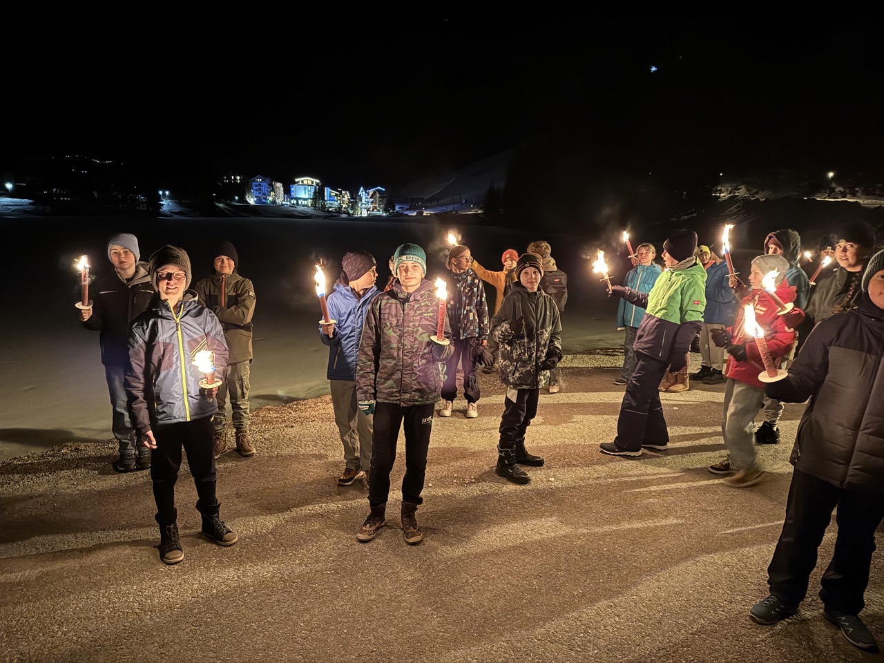 Am Mittwochmorgen freuten wir uns auf das Frühstück. Danach spazierten wir zur Piste, wo wir wieder einige Abfahrten fuhren. Anschließend gab es Mittagessen. Am Nachmittag ging es weiter mit fleißigem Carven und Schussfahrten. Nach einer Weile galt es, zurück zur Unterkunft zu stapfen, uns die Skischuhe auszuziehen und das Abendessen zu genießen. An diesem Tag stand die Fackelwanderung bevor, bei der wir eine Runde um den eingefrorenen Zauchensee gingen. Danach machten wir mit den Fackelresten ein Lagerfeuer, auf dem wir leider nichts grillten. Natürlich mussten wir das Zimmer noch ein letztes Mal zusammenräumen, da wir am Donnerstag bereits unsere Koffer fertig packen mussten.