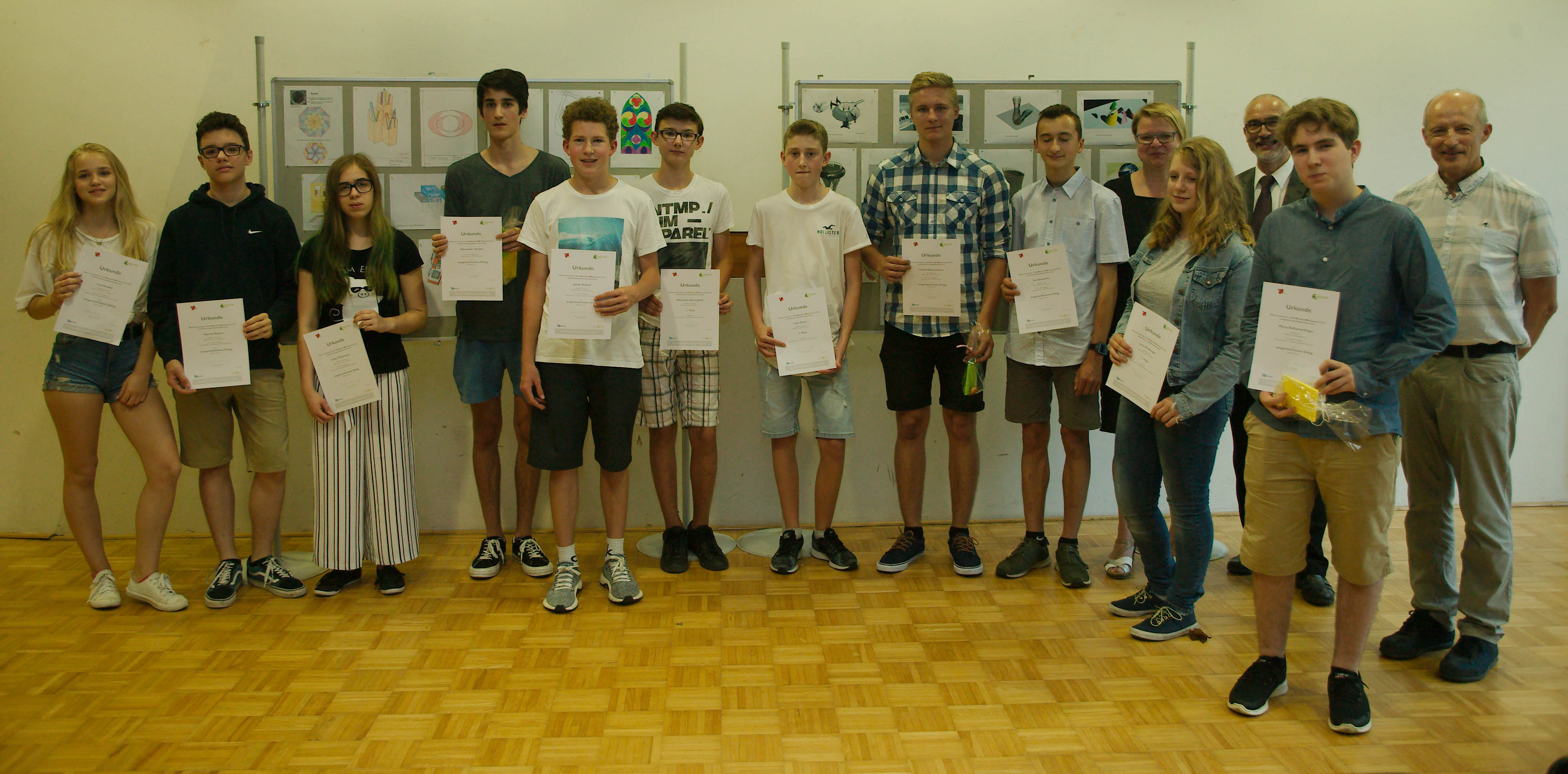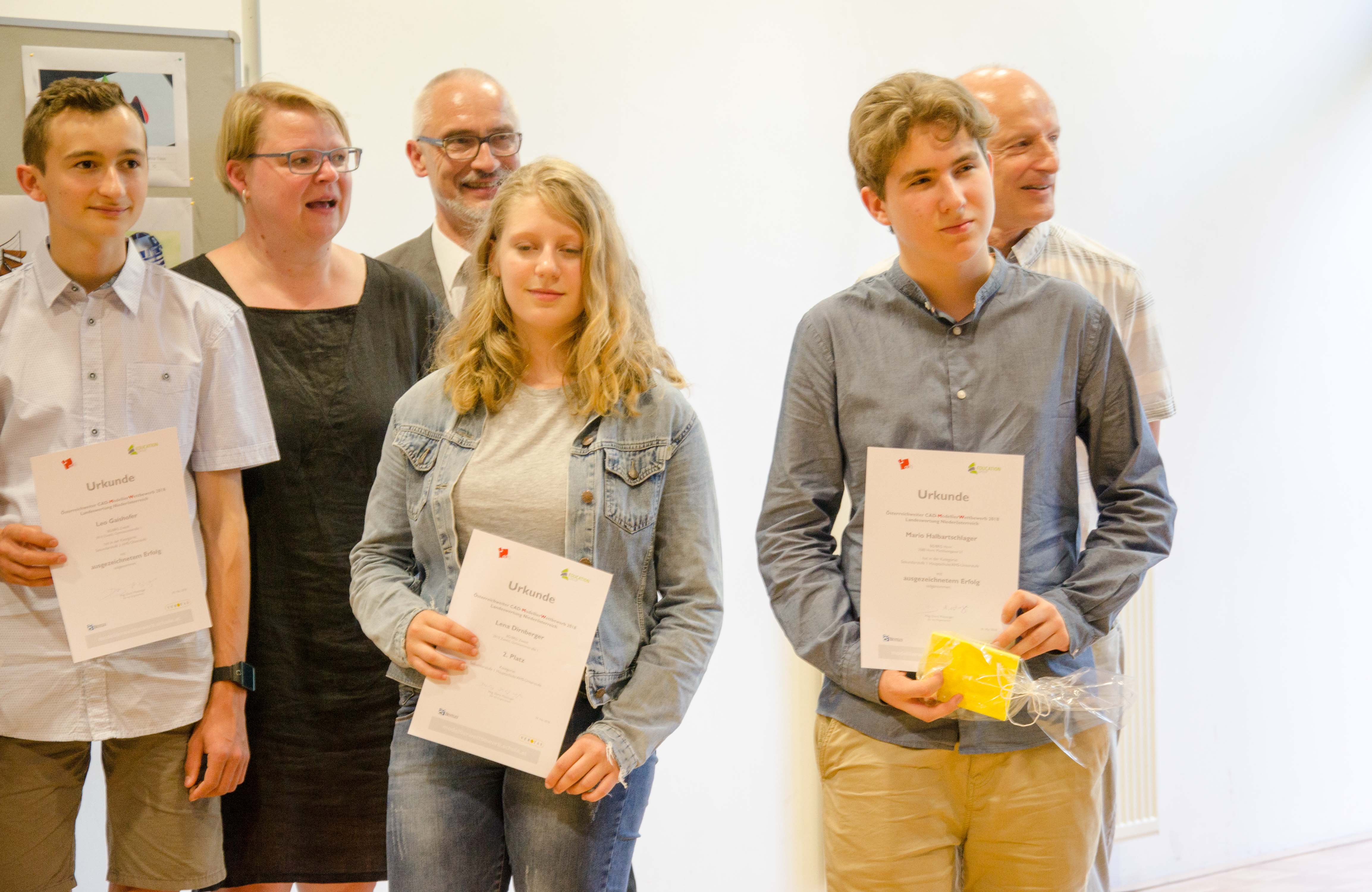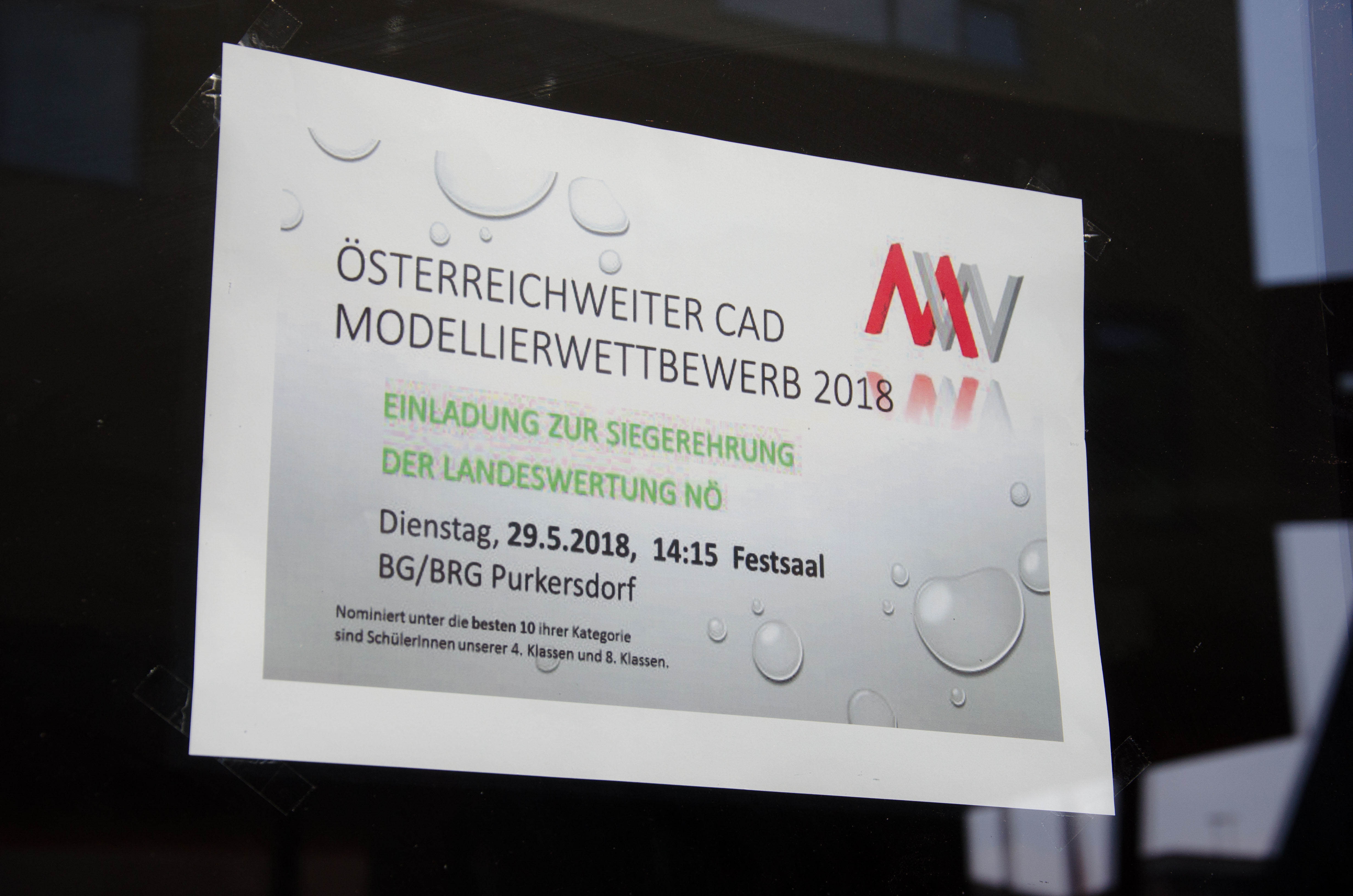 Auch heuer nahmen wieder einige unserer Schülerinnen und Schüler am österreichischen Geometrie-Modellierwettbewerb zum Thema „In die Zukunft“ teil. Mario Halbartschlager, 4c, Hannah Foltas, 7b und Elias Kopitschek, 7b erhielten eine Einladung zur Preisverleihung, welche am 29.5.2018 im BG/BRG Purkersdorf stattfand. Im Rahmen dieser Veranstaltung, welche unter anderem von Fachinspektor Mag. Alfred Nussbaumer besucht wurde, konnte Mario Halbartschlager für sein Projekt „Discovery“ eine Auszeichnung in der Sekundarstufe 1 entgegennehmen. Hannah Foltas und Elias Kopitschek wurden die Urkunden aufgrund Ihres Aufenthaltes in Irland in der Schule nachgereicht. Hannah Foltas darf sich ebenfalls über eine Auszeichnung in der Sekundarstufe 2 freuen und Elias Kopitschek erreichte sogar den 3. Platz in der Landeswertung. Wir gratulieren und freuen uns auf weitere tolle Projekte im DG-Unterricht im kommenden Schuljahr!
