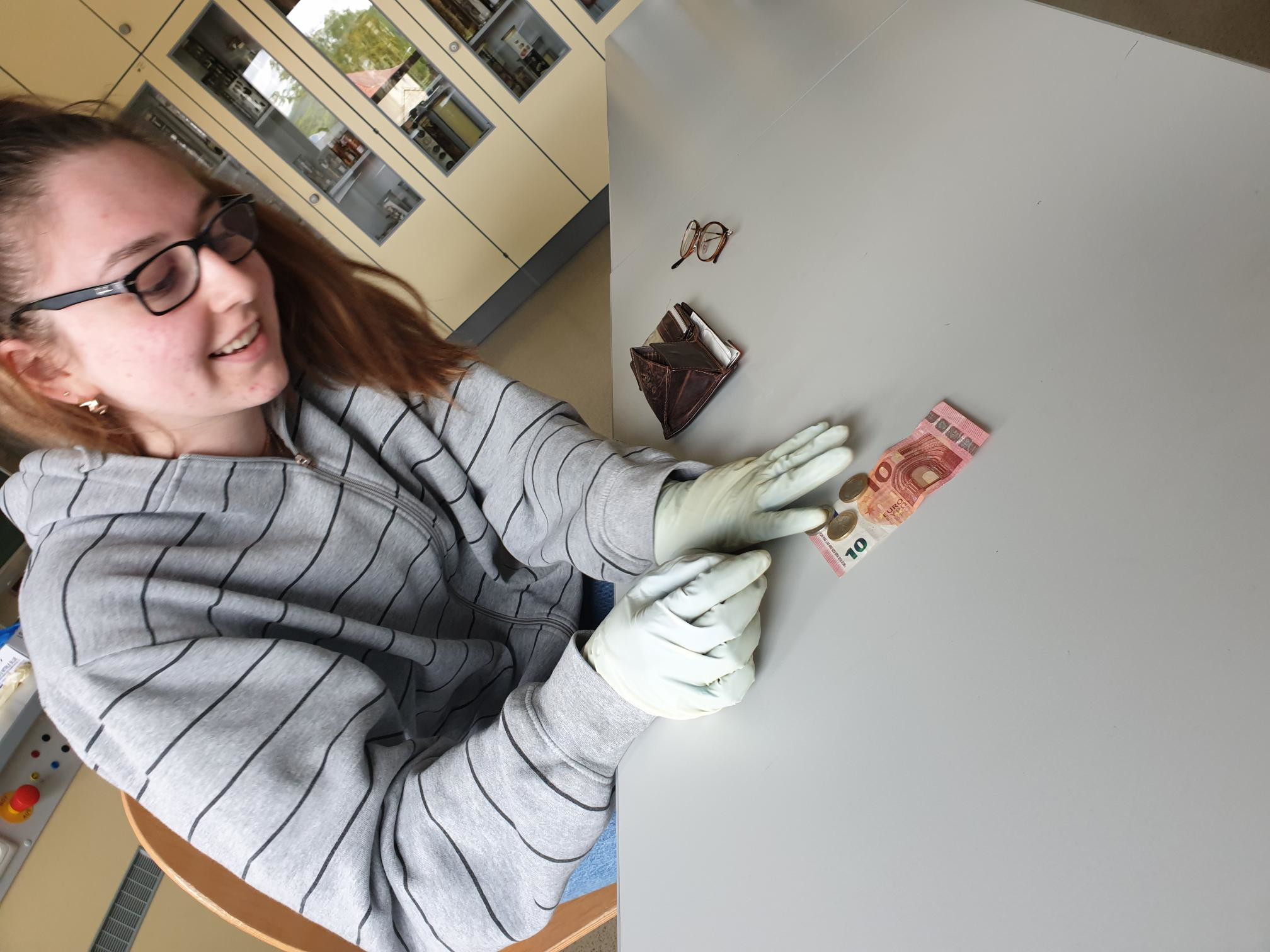 Diese Altagsaufgabe ist für sehschwache, motorisch und kognitiv nicht mehr so wendige Menschen eine Herausforderung. Damit wir uns diese Situation vorstellen konnten, absolvierten einige Schülerinnen diesen Test. Die Sehschwäche simulierten wir mit einer Brille mit mehreren Dioptrien, mehrere Paar Handschuhe übereinander angezogen, stellten eine motorisch nicht mehr so fitte Patientientensituation nach. Kognitiv konnten wir die Einschränkungen nicht simulieren. Der Testablauf wurde mitgestoppt und die Schülerinnen bemerkten, wie eine Visusbeeinträchtigung und eine motorische Behinderung diese Aufgabe erschwerten.