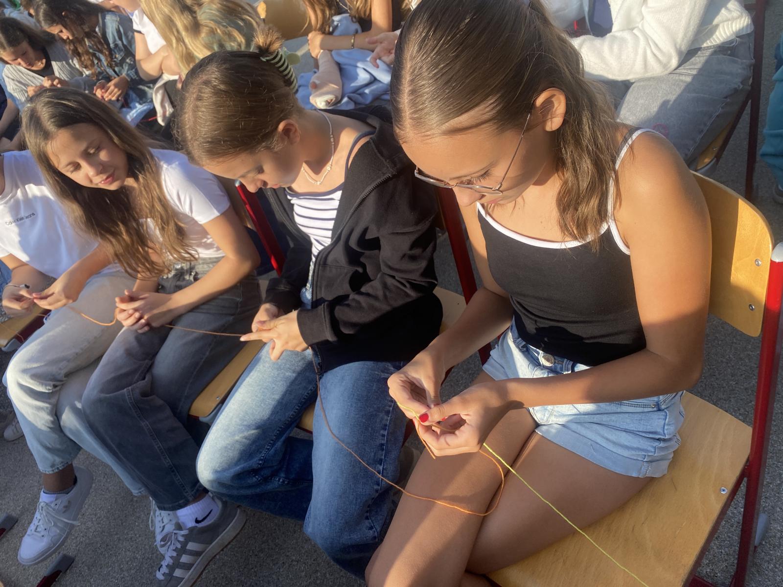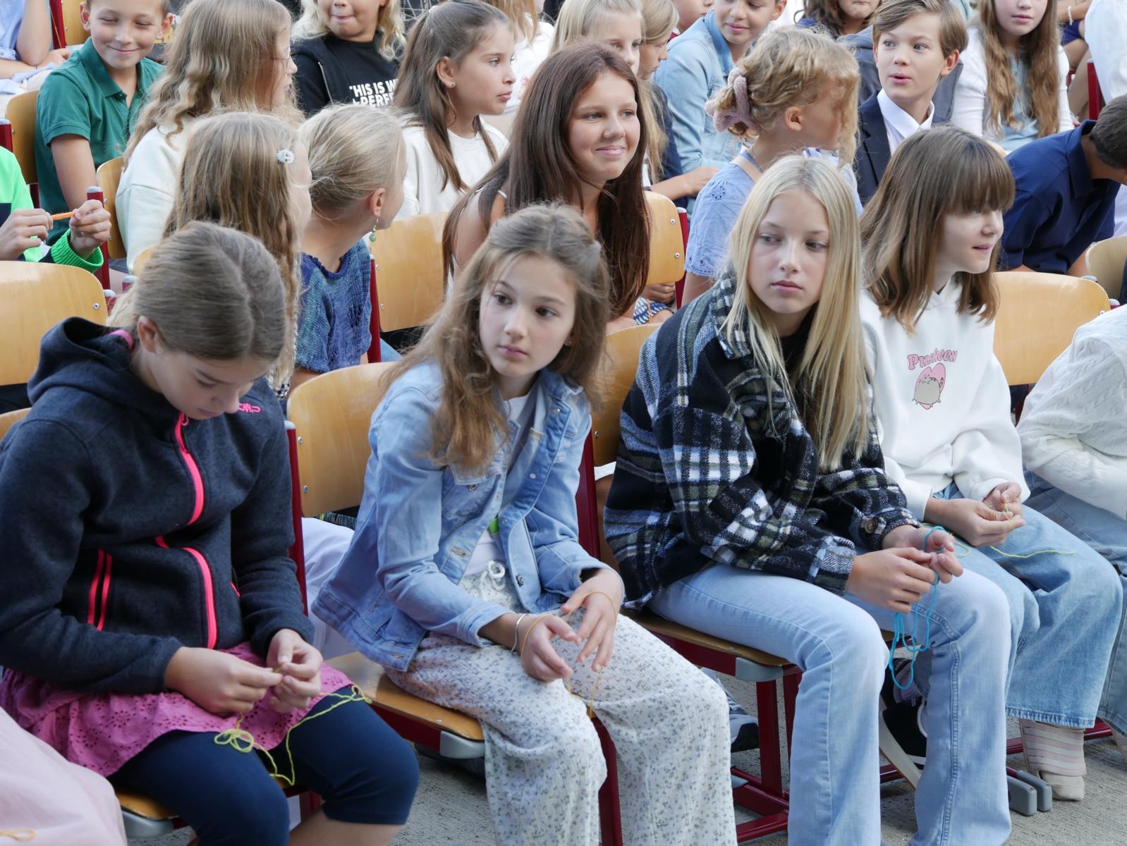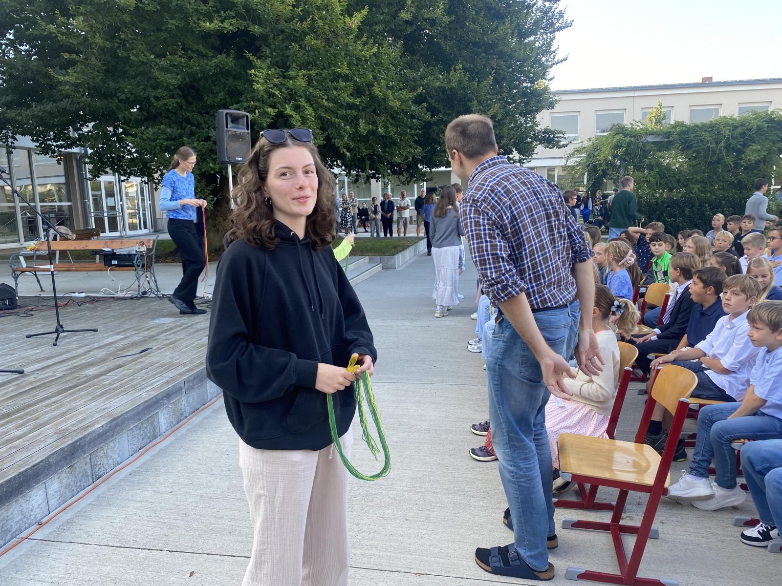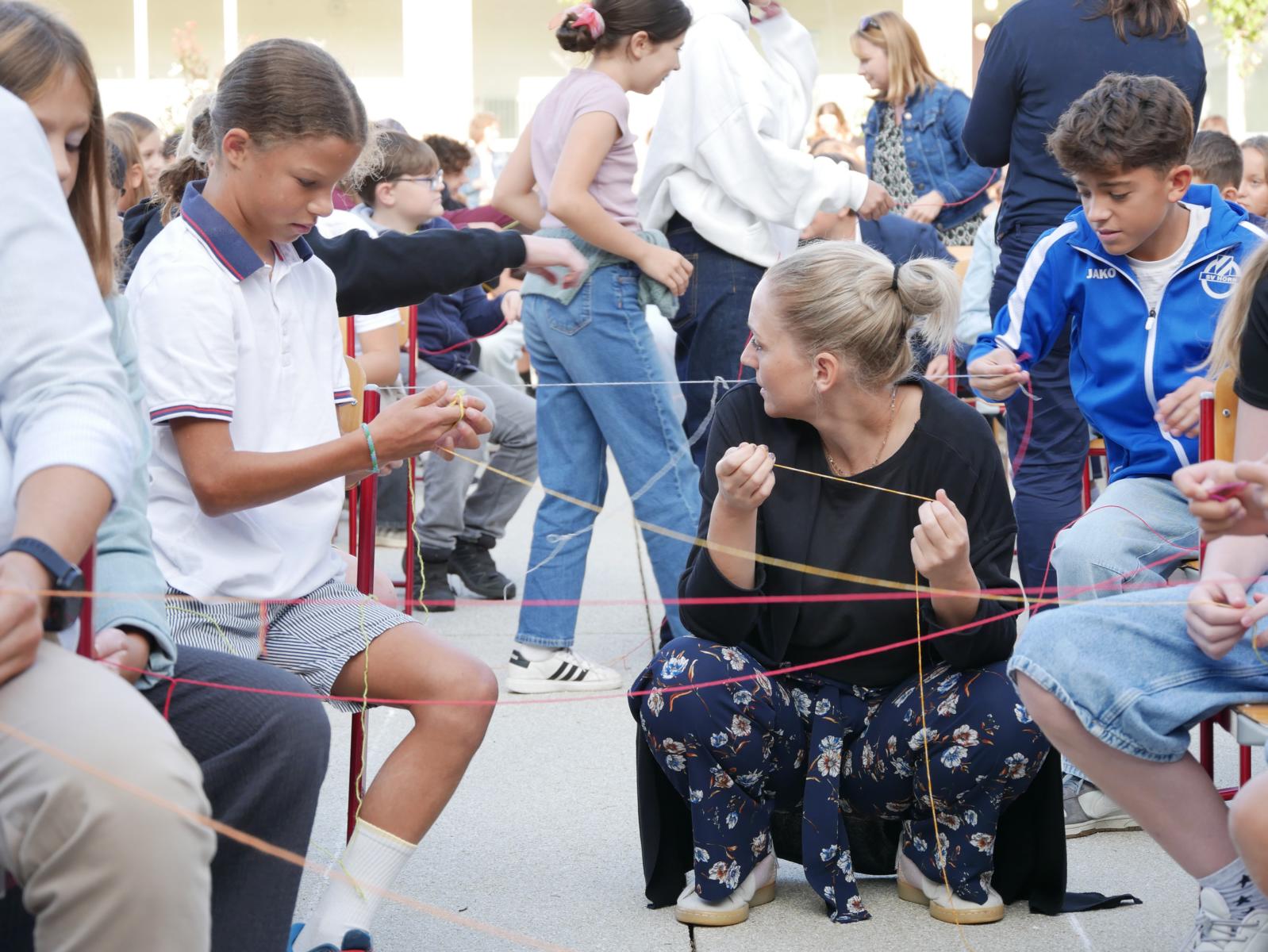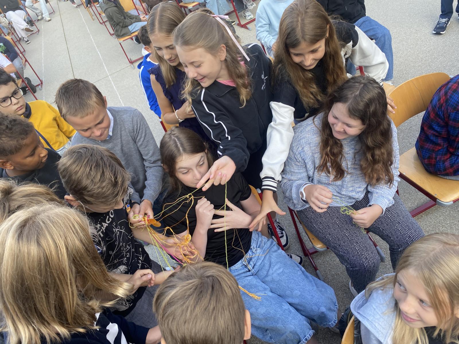 Als Symbol für Vielfalt und Zusammenhalt erhielt jede und jeder von Pfarrerin Birgit Schiller oder den anderen Religionslehrern ein Stück bunten Wollfaden. Die Farben waren so unterschiedlich wie die Menschen, die sie hielten – und doch wurden alle Fäden zu einer langen Schnur verknüpft. Ein starkes Zeichen: Wir sind verschieden, aber wir gehören zusammen.