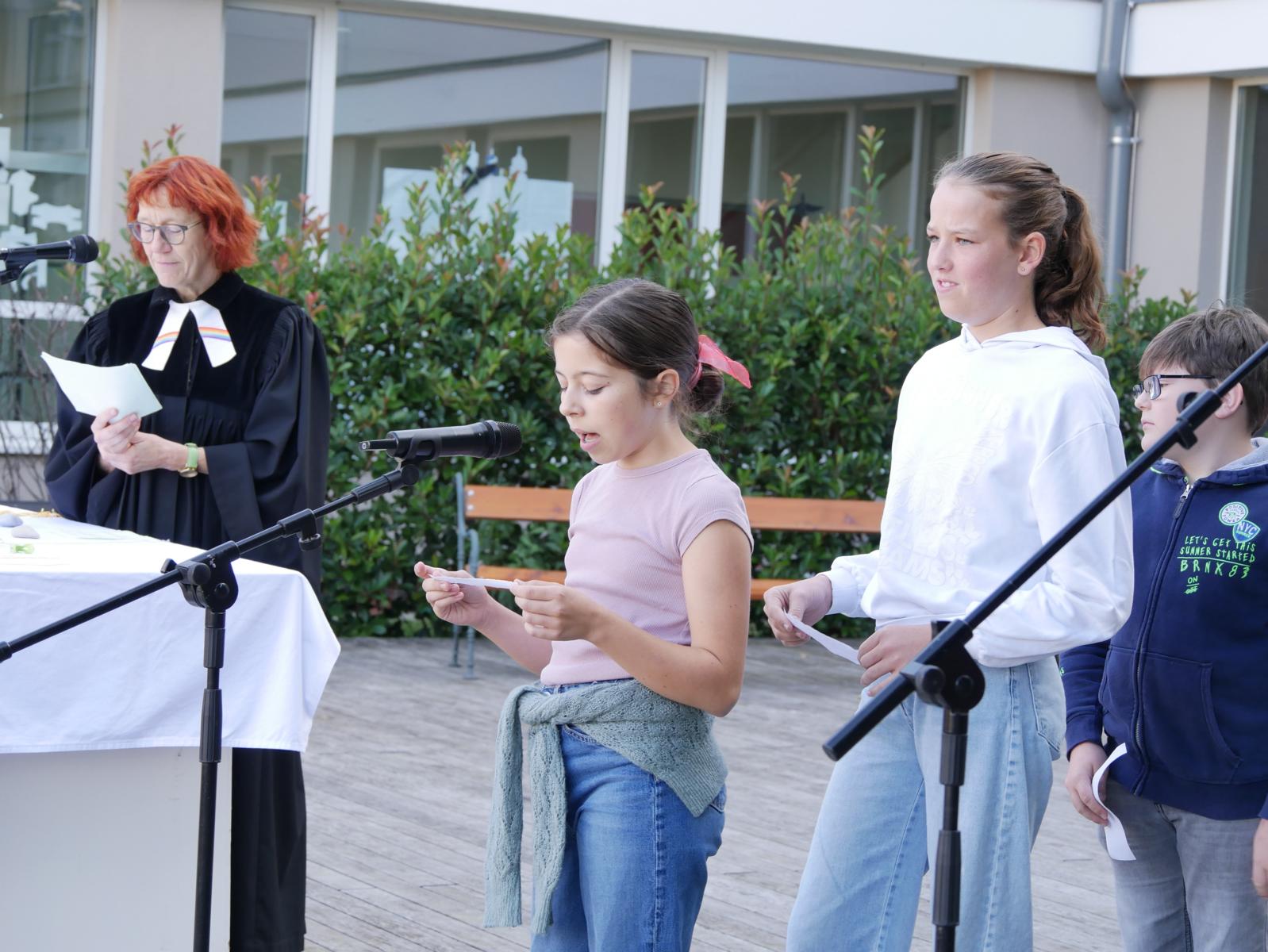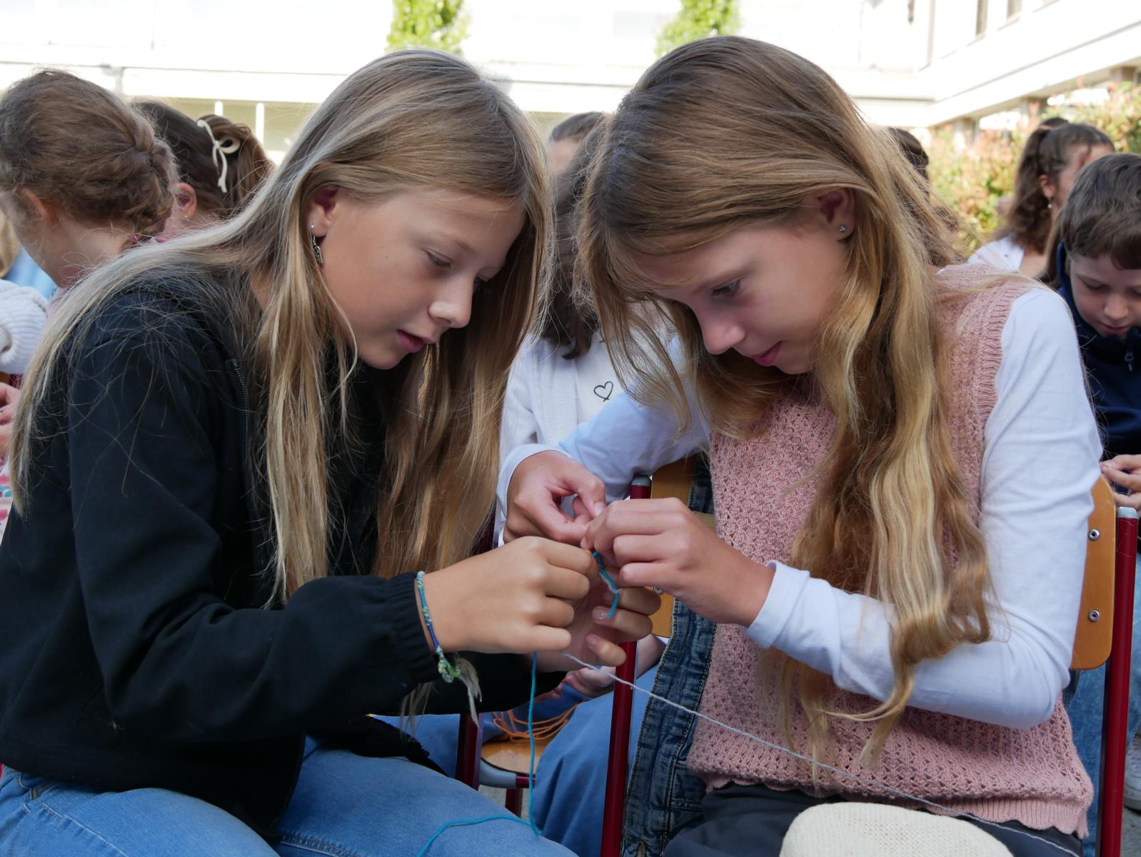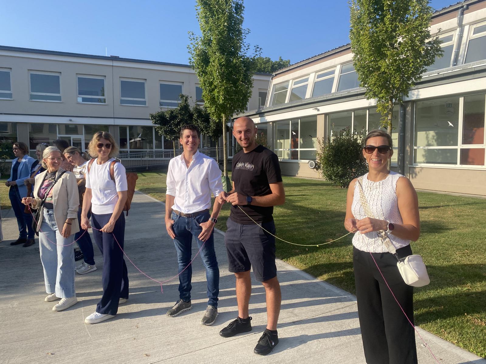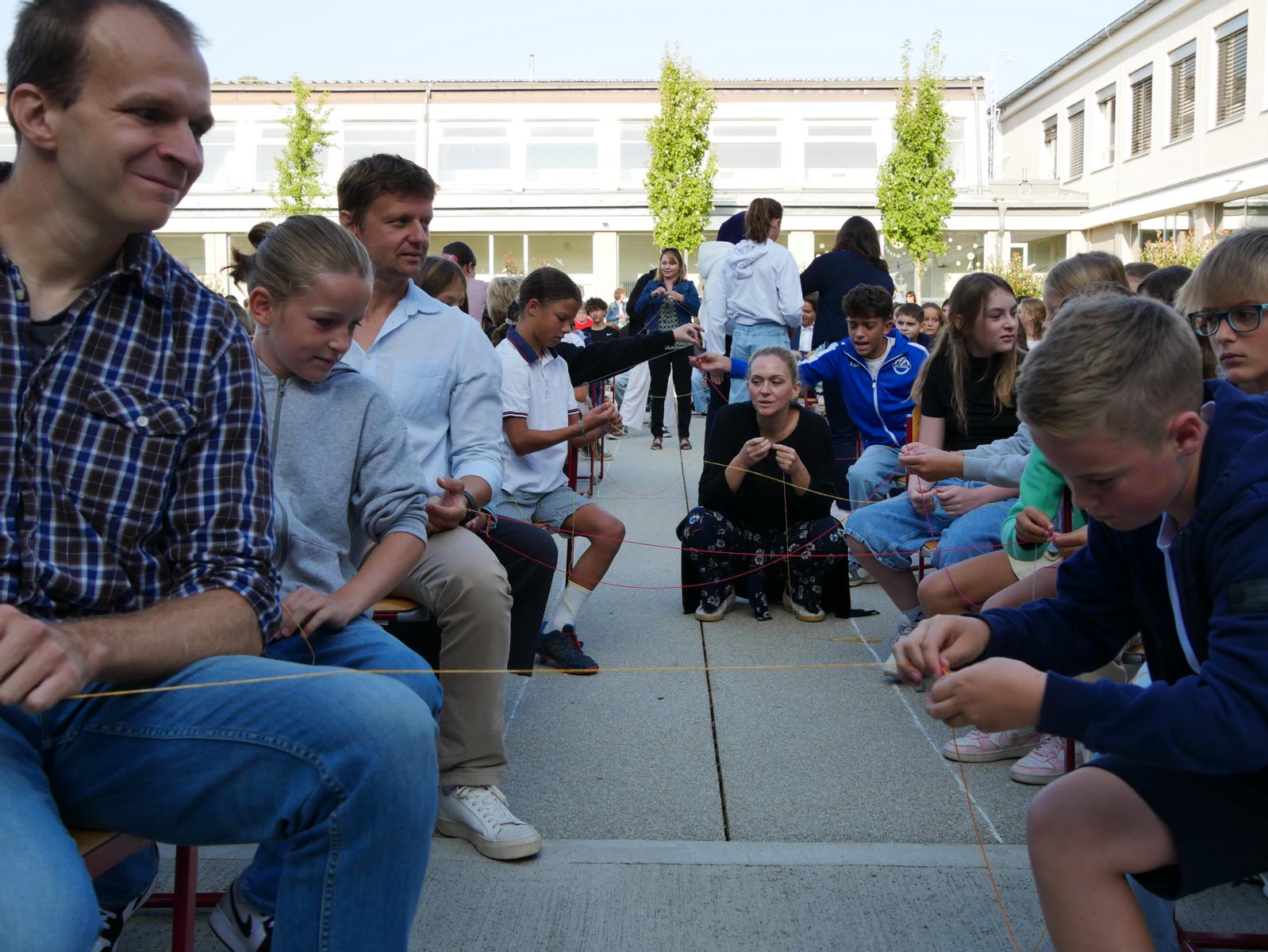 Als Symbol für Vielfalt und Zusammenhalt erhielt jede und jeder von Pfarrerin Birgit Schiller oder den anderen Religionslehrern ein Stück bunten Wollfaden. Die Farben waren so unterschiedlich wie die Menschen, die sie hielten – und doch wurden alle Fäden zu einer langen Schnur verknüpft. Ein starkes Zeichen: Wir sind verschieden, aber wir gehören zusammen.
