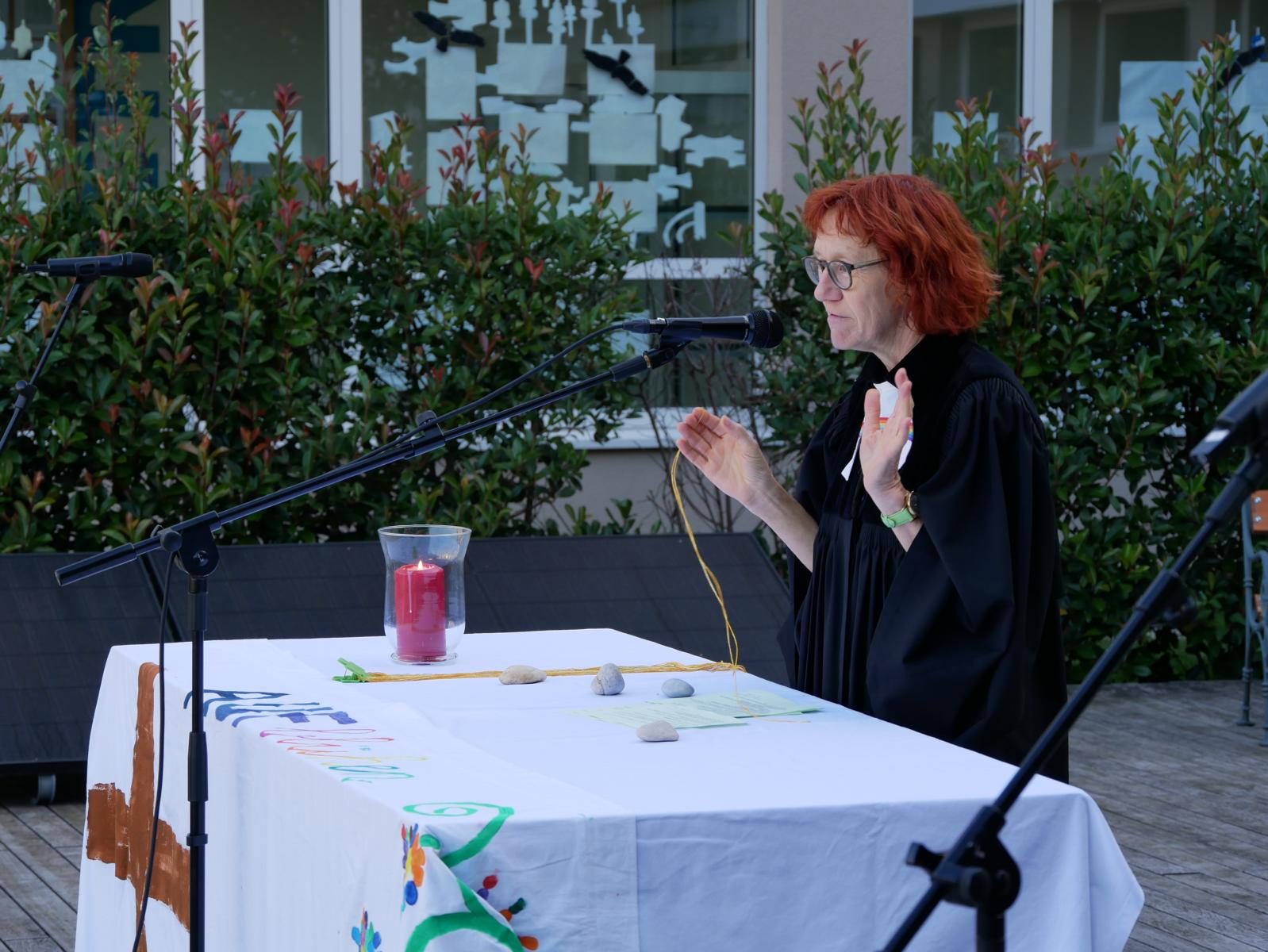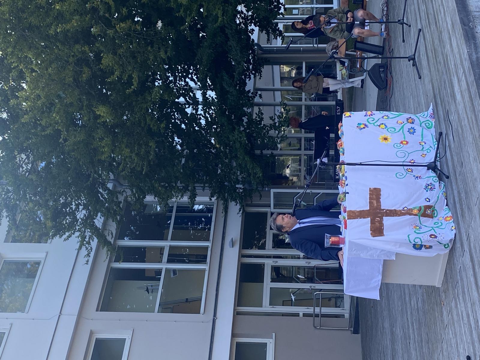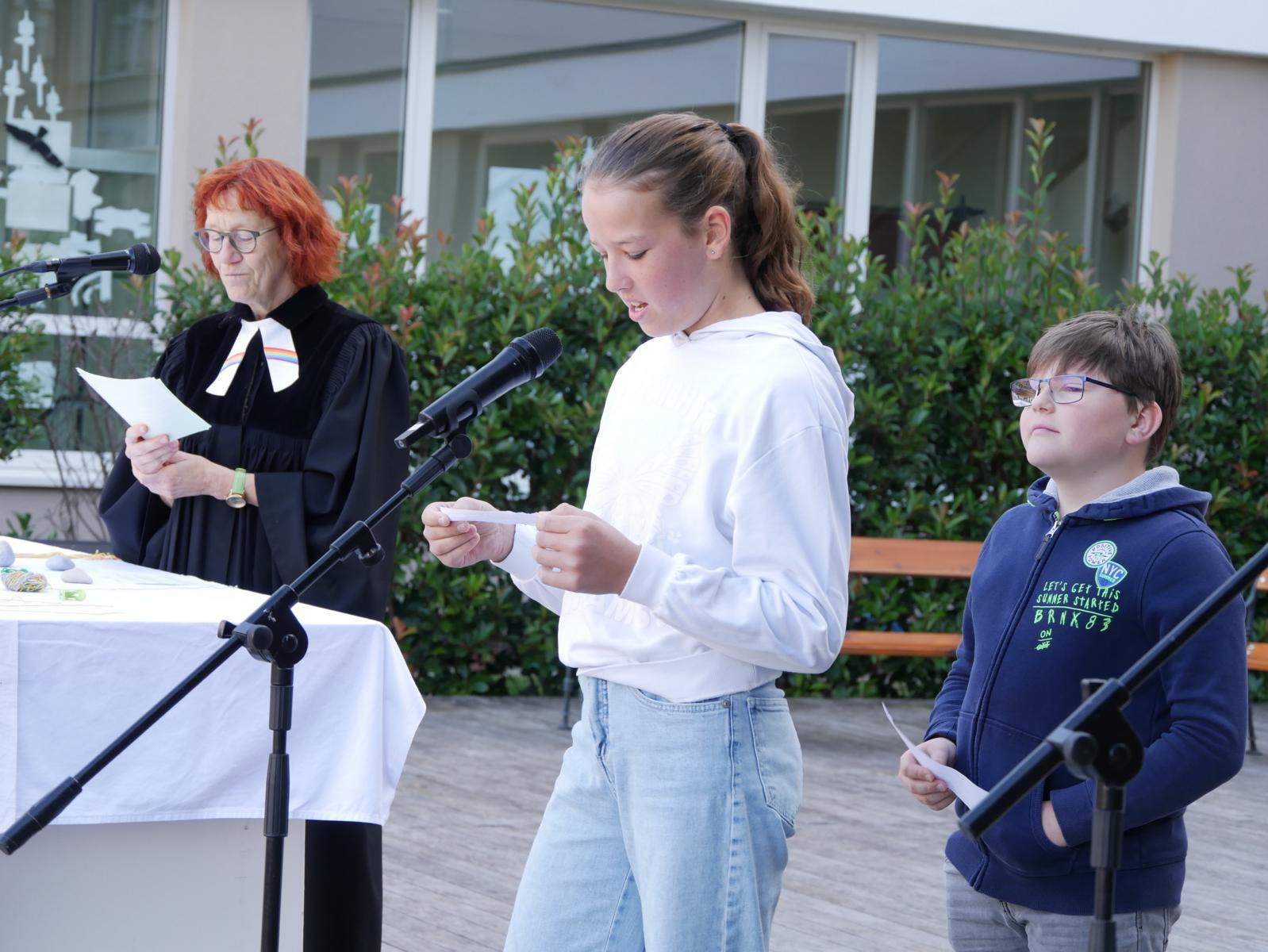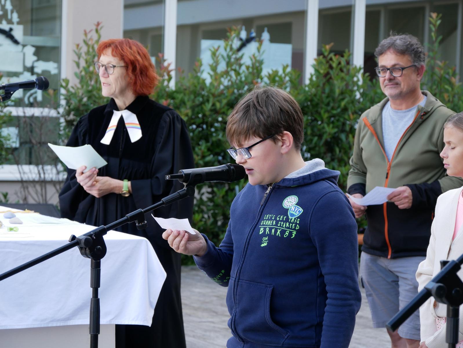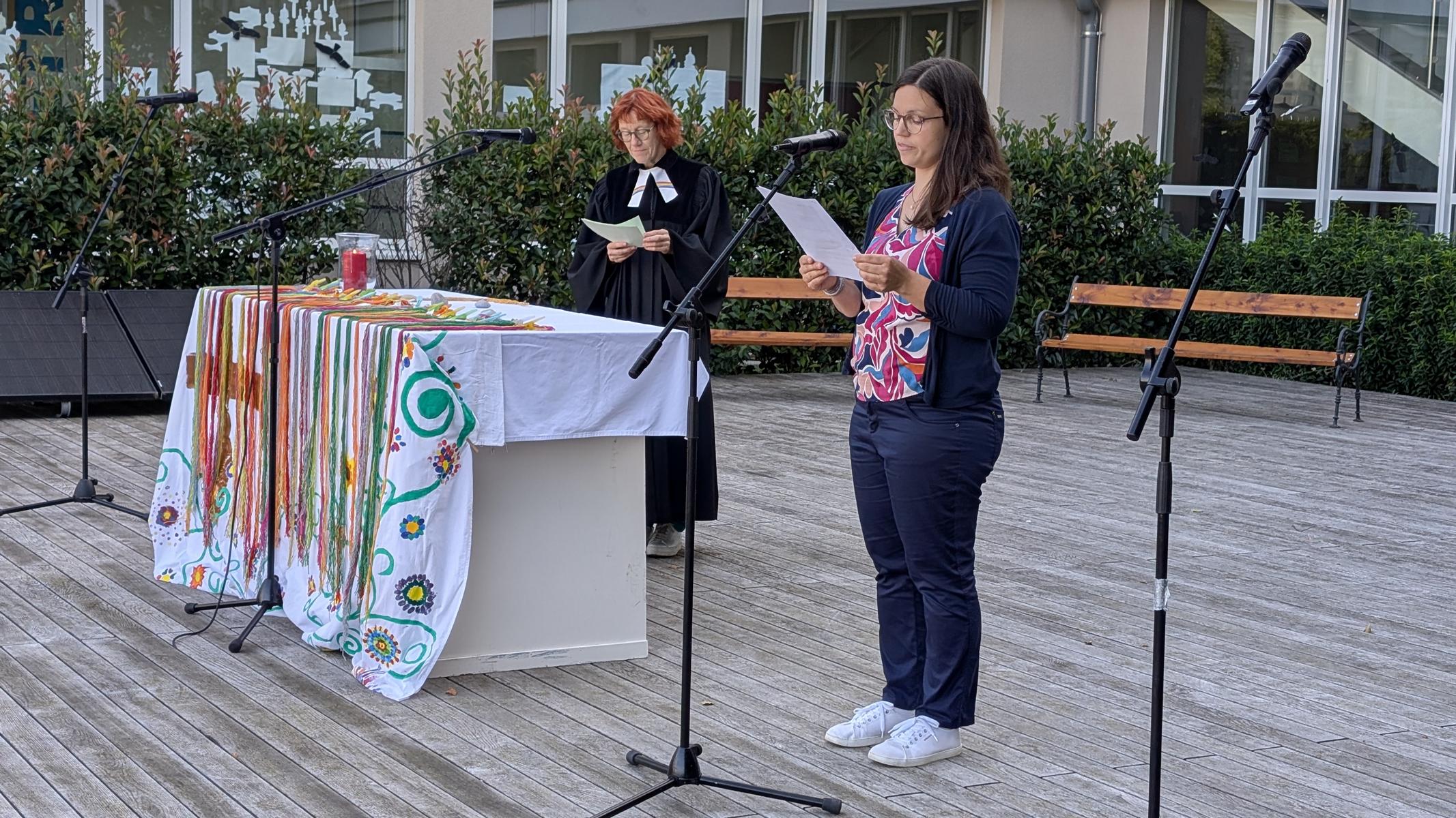 Als Symbol für Vielfalt und Zusammenhalt erhielt jede und jeder von Pfarrerin Birgit Schiller oder den anderen Religionslehrern ein Stück bunten Wollfaden. Die Farben waren so unterschiedlich wie die Menschen, die sie hielten – und doch wurden alle Fäden zu einer langen Schnur verknüpft. Ein starkes Zeichen: Wir sind verschieden, aber wir gehören zusammen.