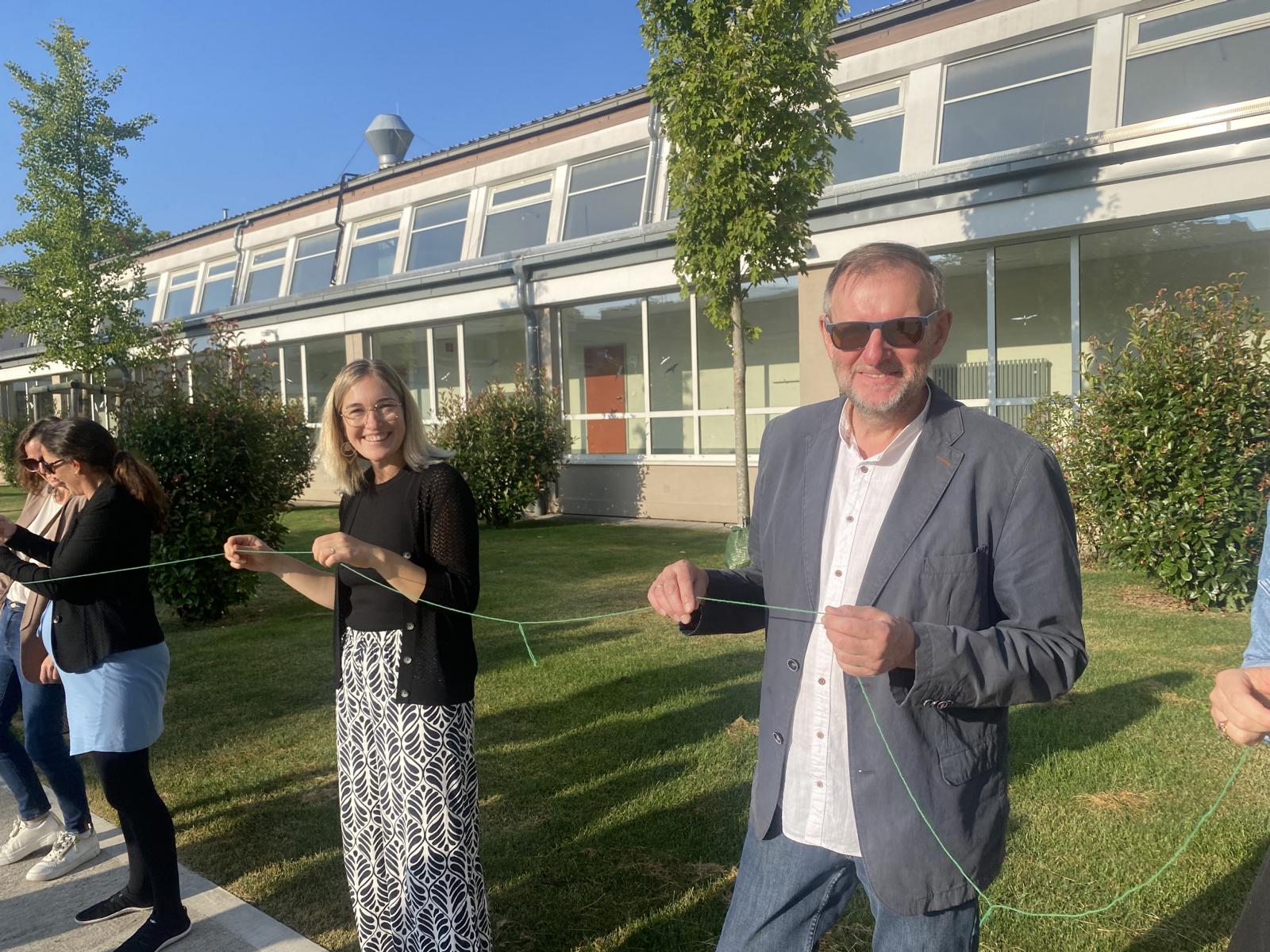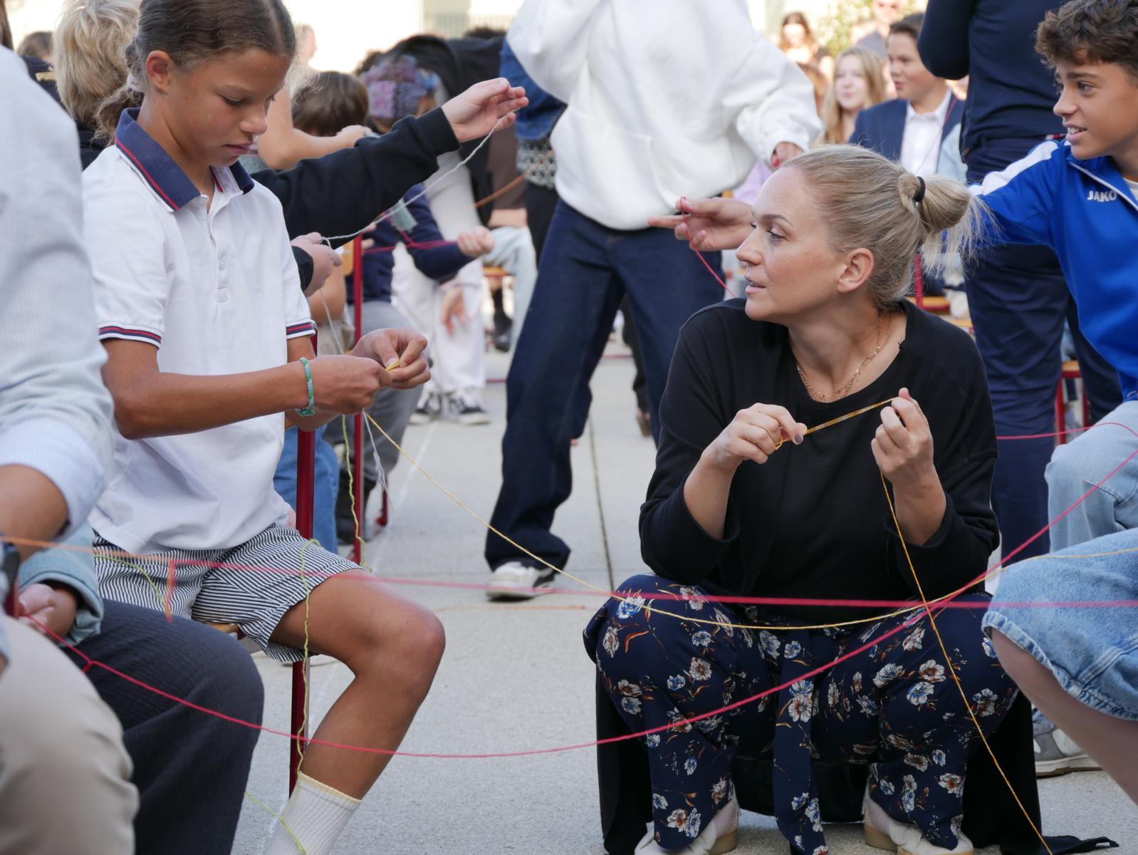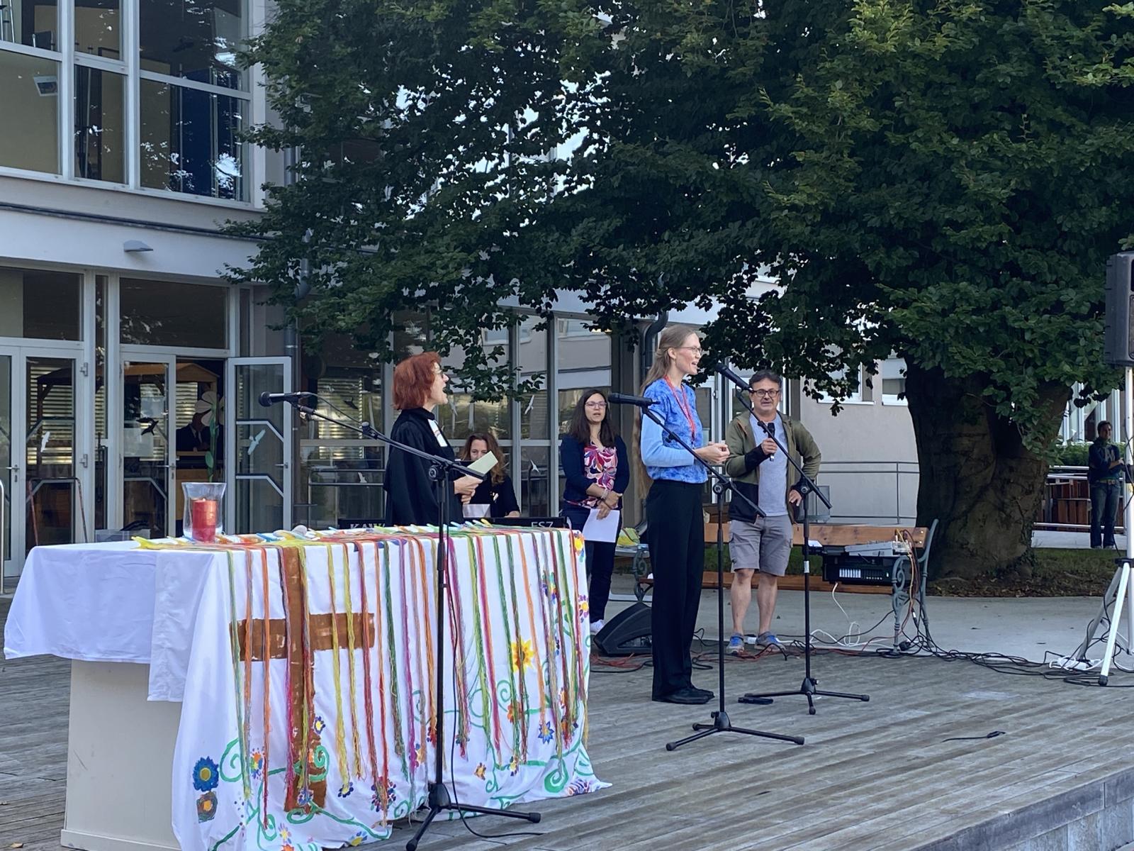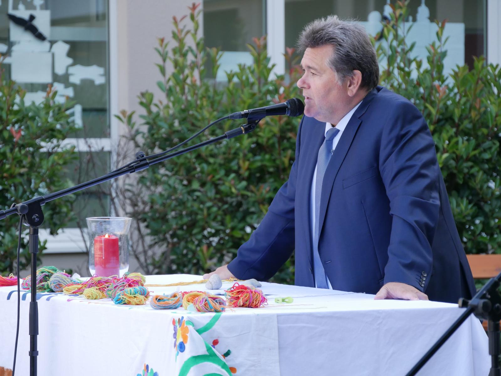 Als Symbol für Vielfalt und Zusammenhalt erhielt jede und jeder von Pfarrerin Birgit Schiller oder den anderen Religionslehrern ein Stück bunten Wollfaden. Die Farben waren so unterschiedlich wie die Menschen, die sie hielten – und doch wurden alle Fäden zu einer langen Schnur verknüpft. Ein starkes Zeichen: Wir sind verschieden, aber wir gehören zusammen.