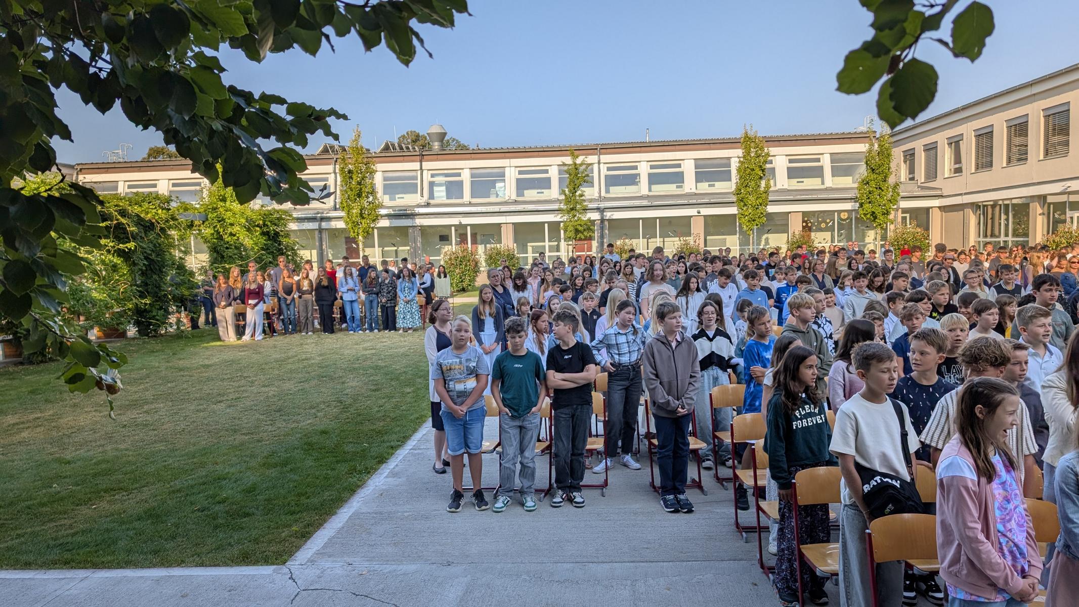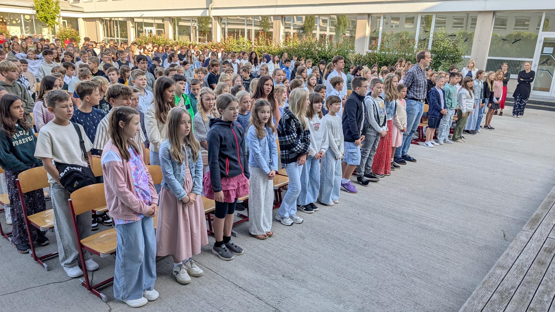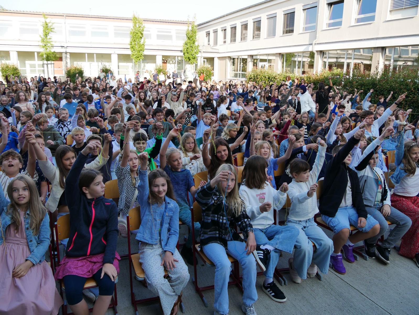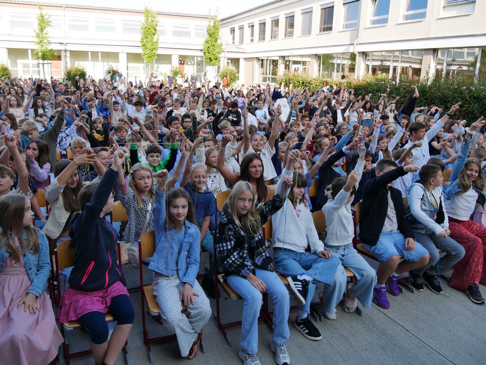 Mit einem fröhlichen „If you're happy and you know it …“ begann das neue Schuljahr am Gymnasium Horn voller Energie und Gemeinschaftsgeist. Das bekannte Mitmachlied brachte nicht nur gute Laune, sondern auch Bewegung in die Reihen – Schüler:innen, Lehrer:innen und Eltern wurden sofort zum Mitklatschen und Mitsingen animiert.
