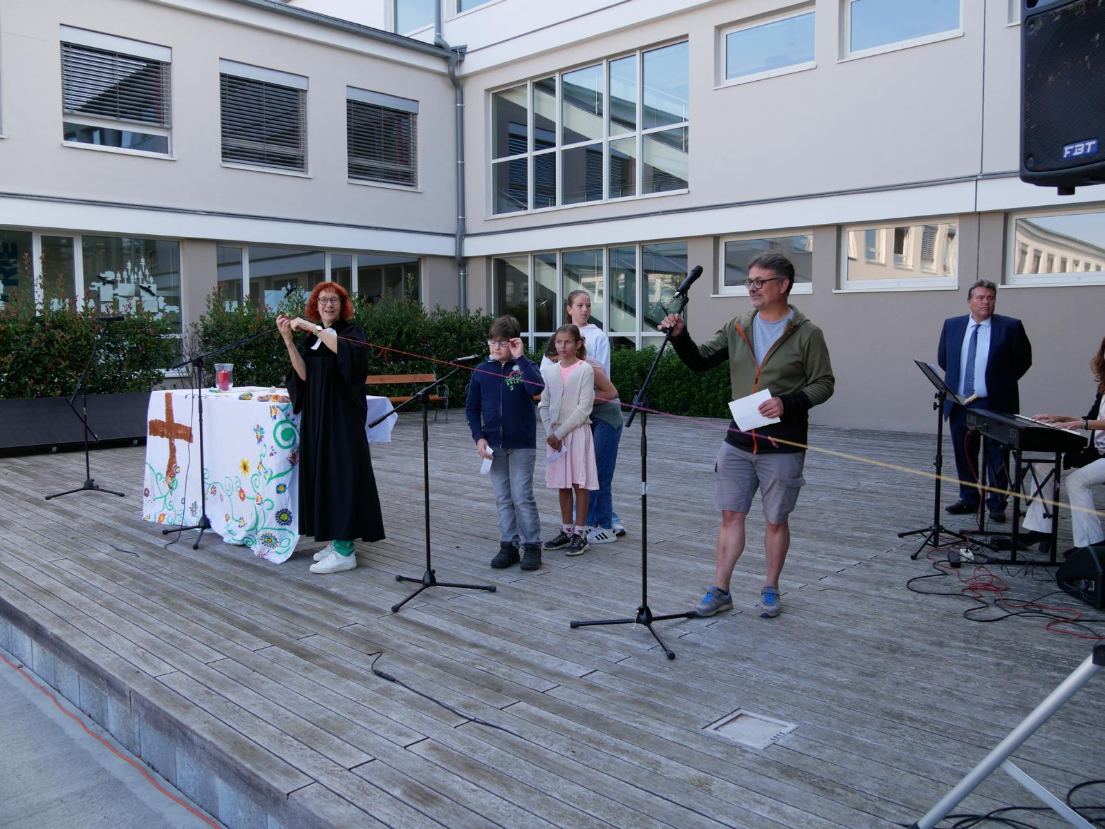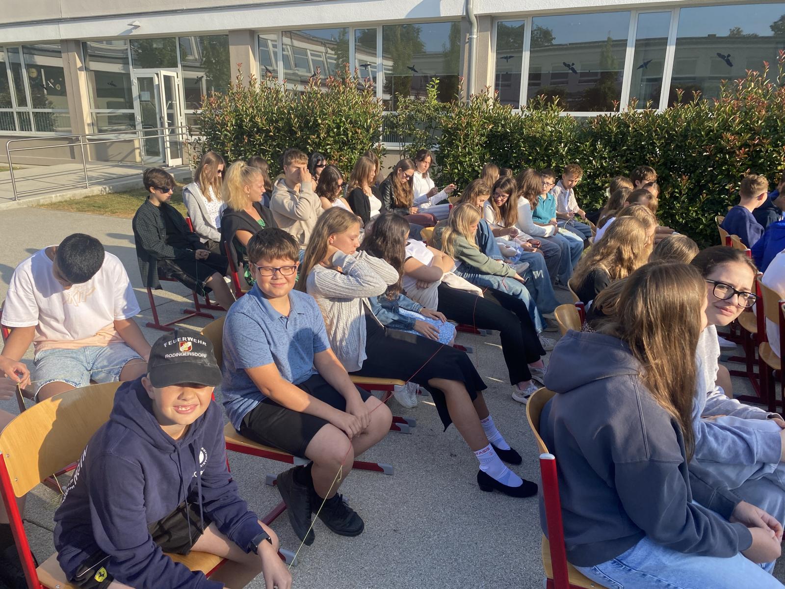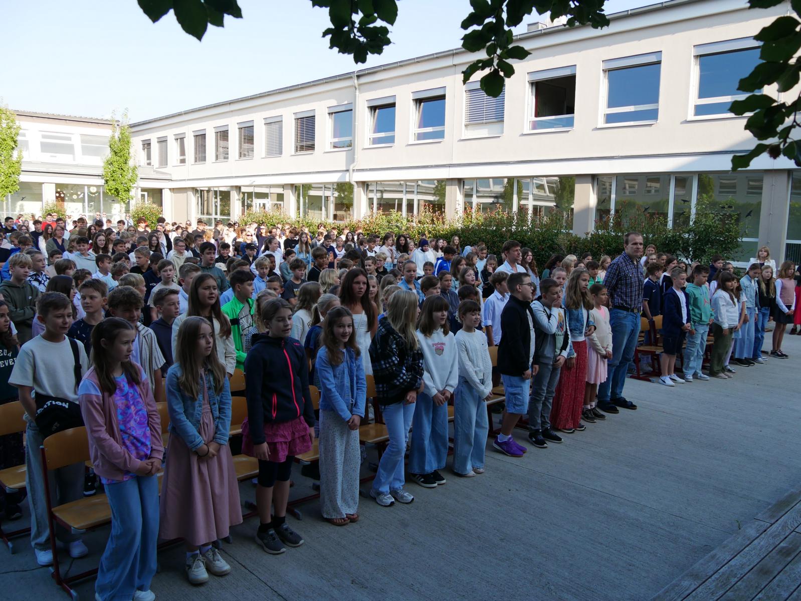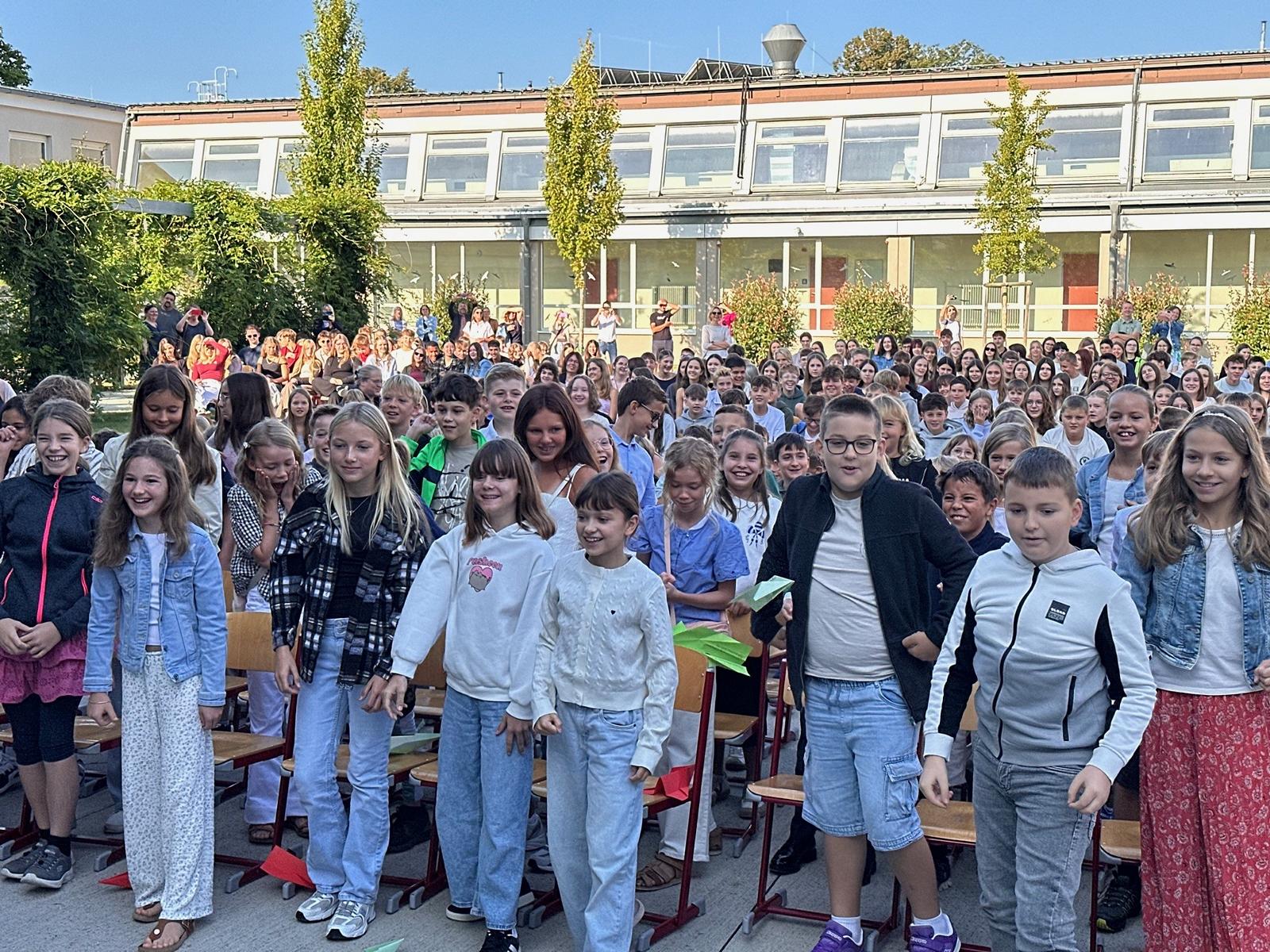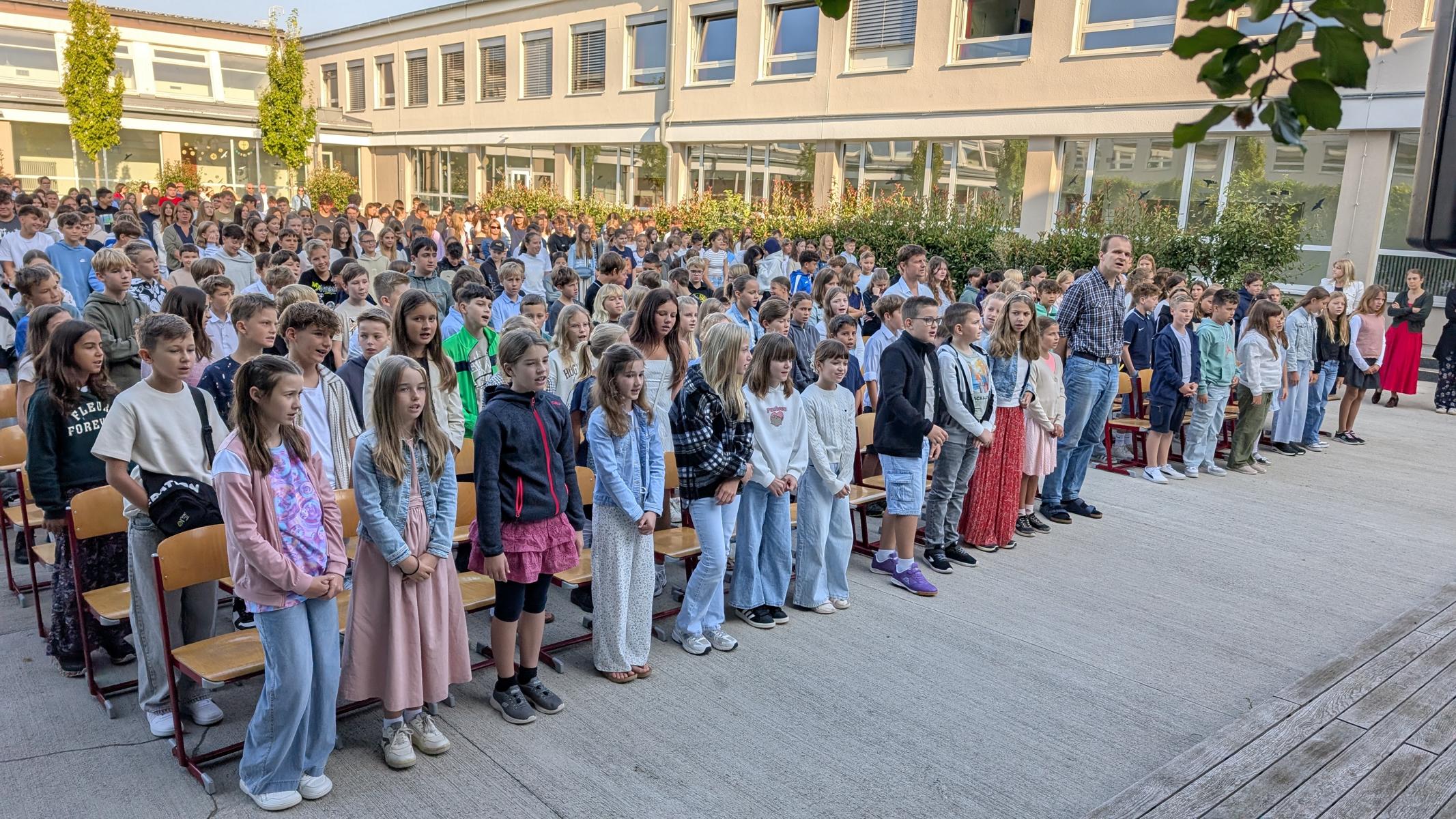 Mit einem fröhlichen „If you're happy and you know it …“ begann das neue Schuljahr am Gymnasium Horn voller Energie und Gemeinschaftsgeist. Das bekannte Mitmachlied brachte nicht nur gute Laune, sondern auch Bewegung in die Reihen – Schüler:innen, Lehrer:innen und Eltern wurden sofort zum Mitklatschen und Mitsingen animiert.
