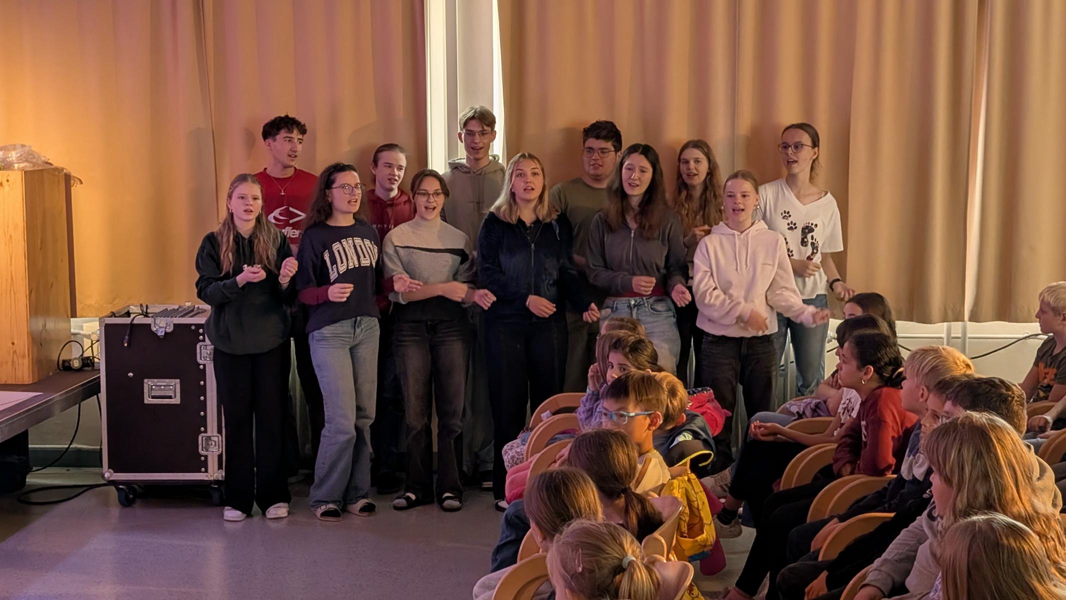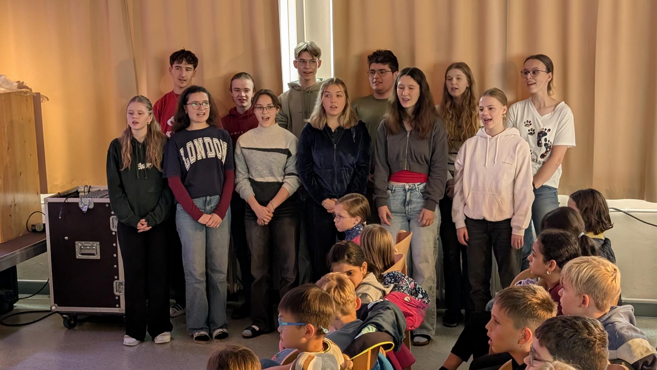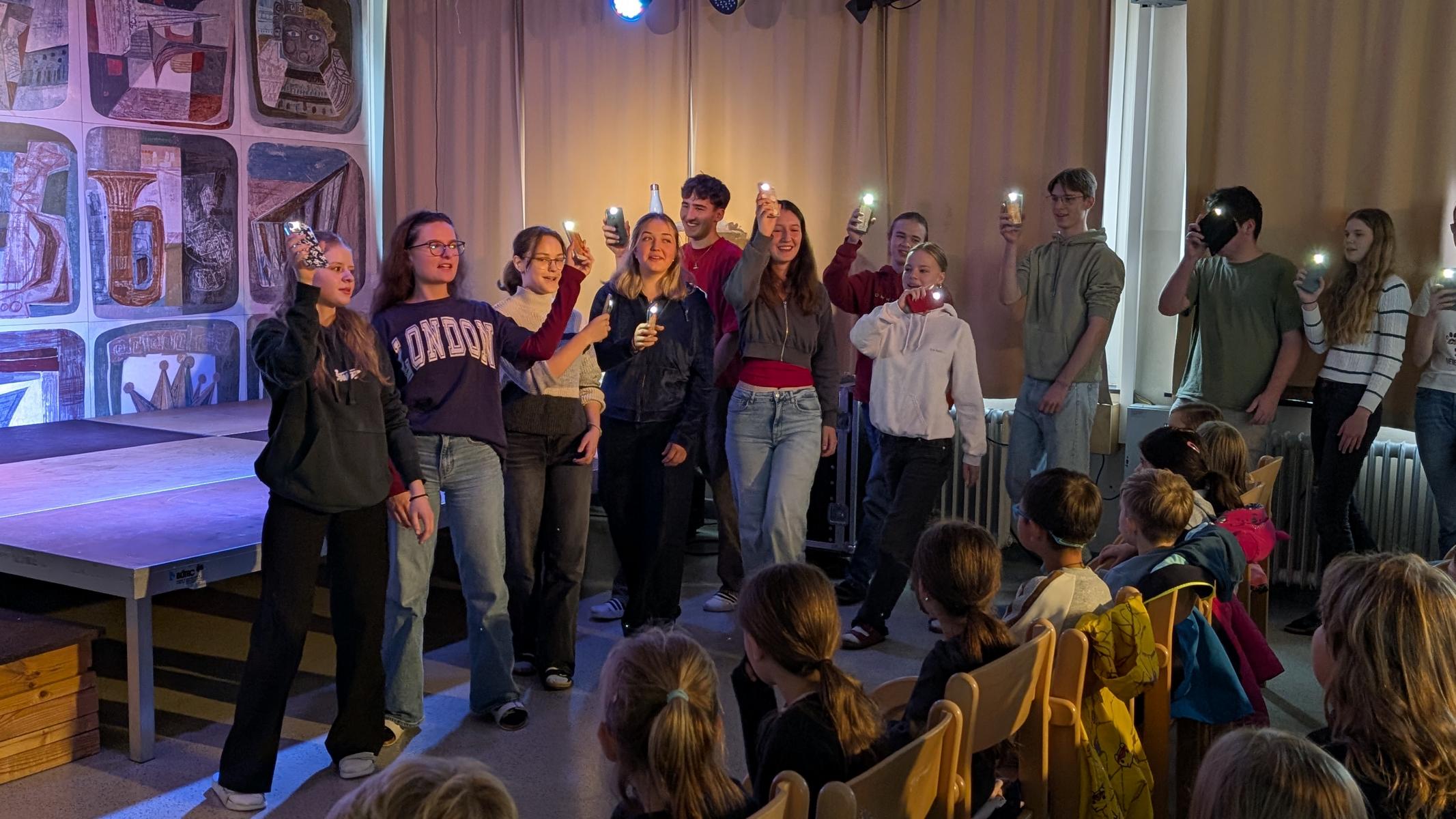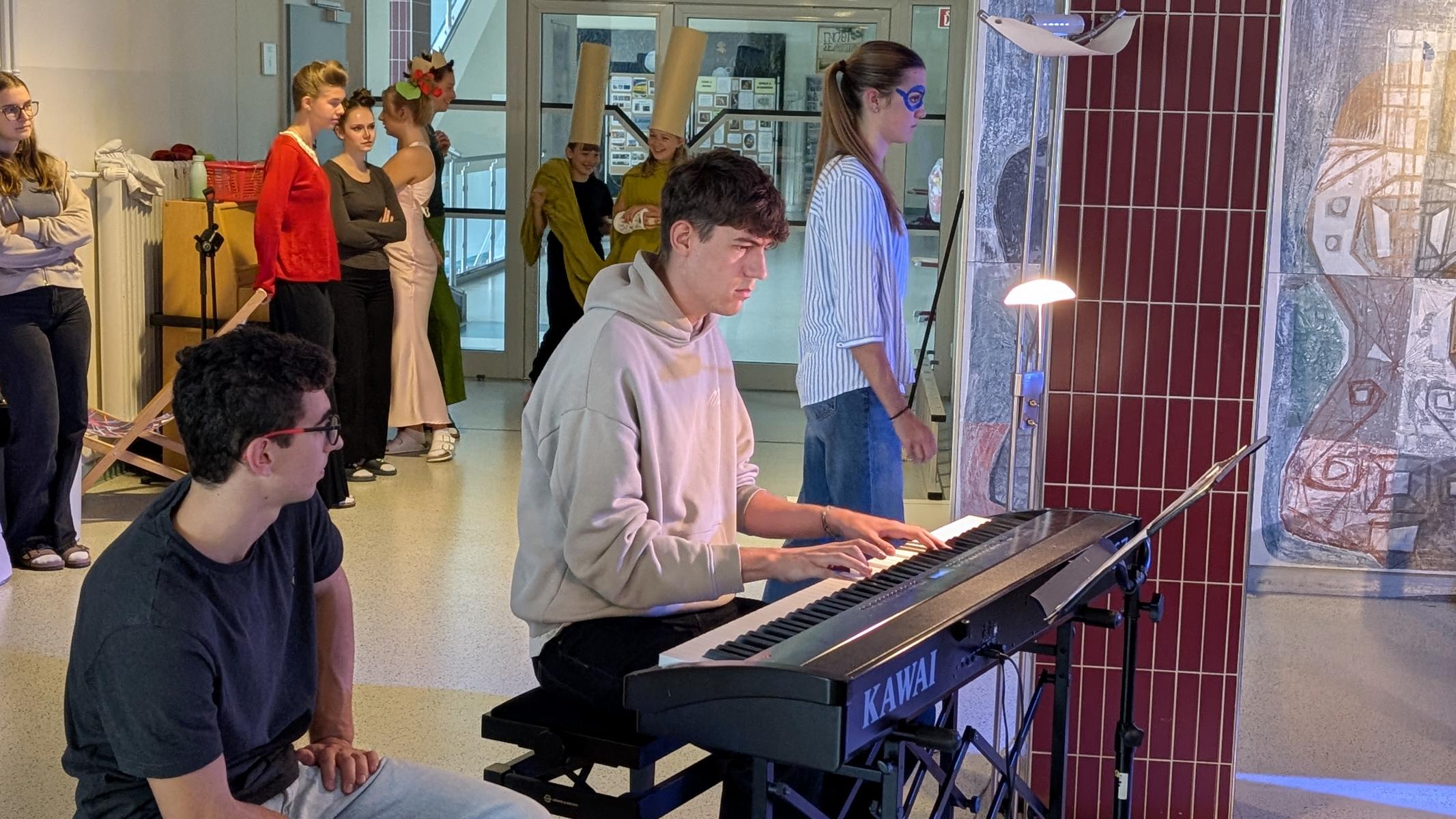 Musikalisch begleitet wurde die Inszenierung von stimmungsvollen Stücken der 8a und 8b mit Musiklehrerin Christiane Resch-Raab. Die Musik unterstrich eindrucksvoll die emotionale Reise des kleinen Prinzen und verlieh dem Stück eine besondere Tiefe.