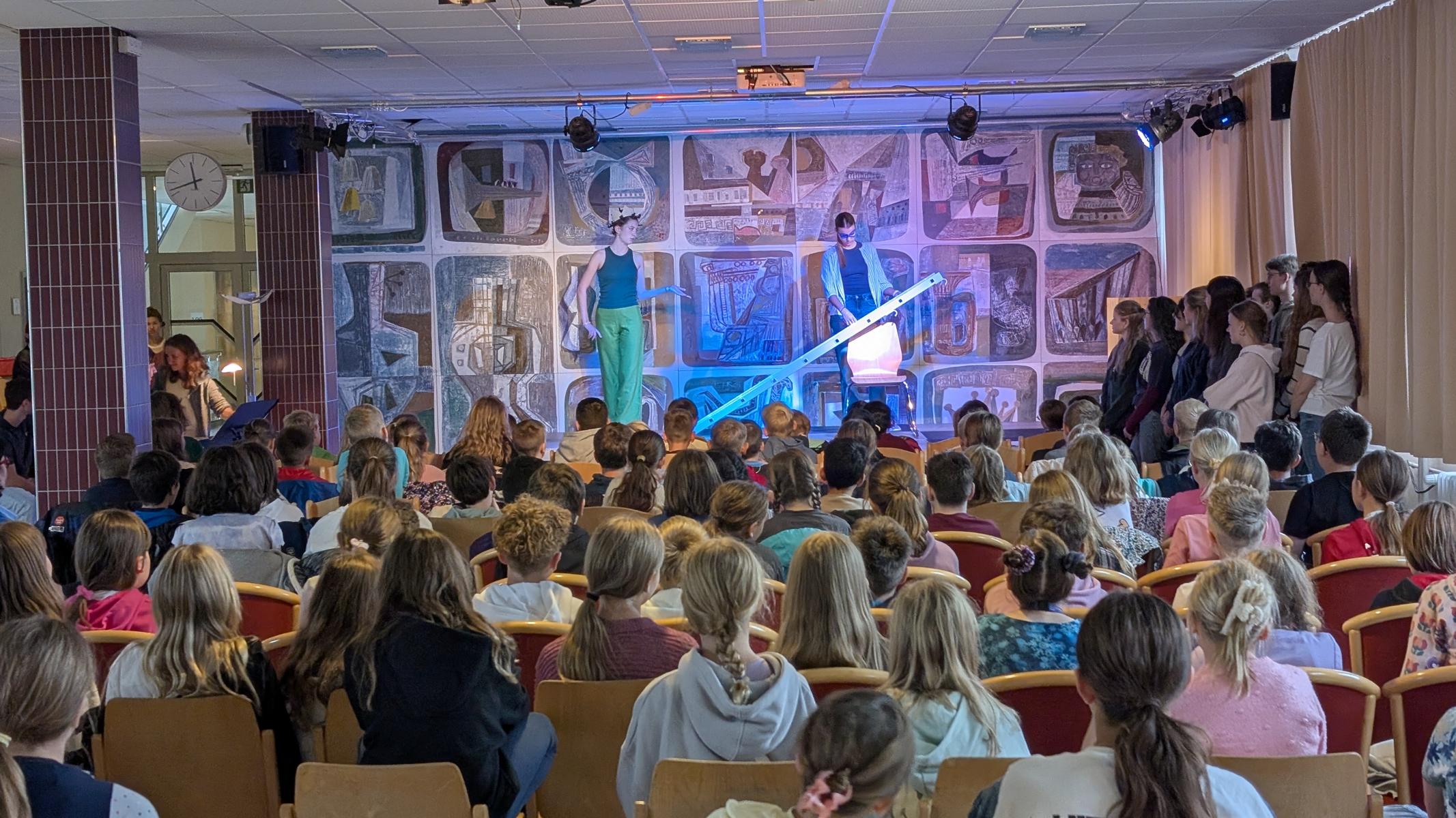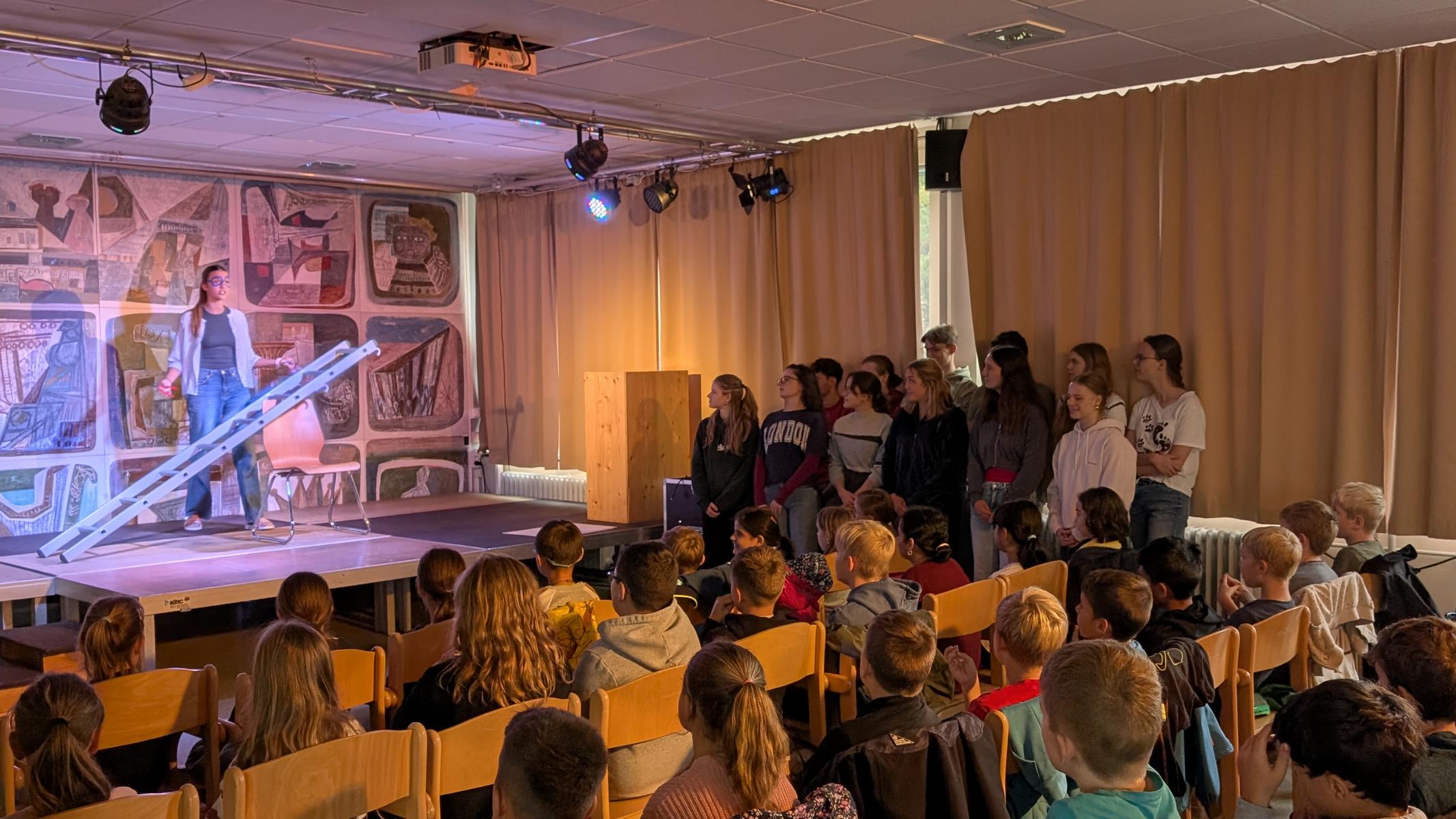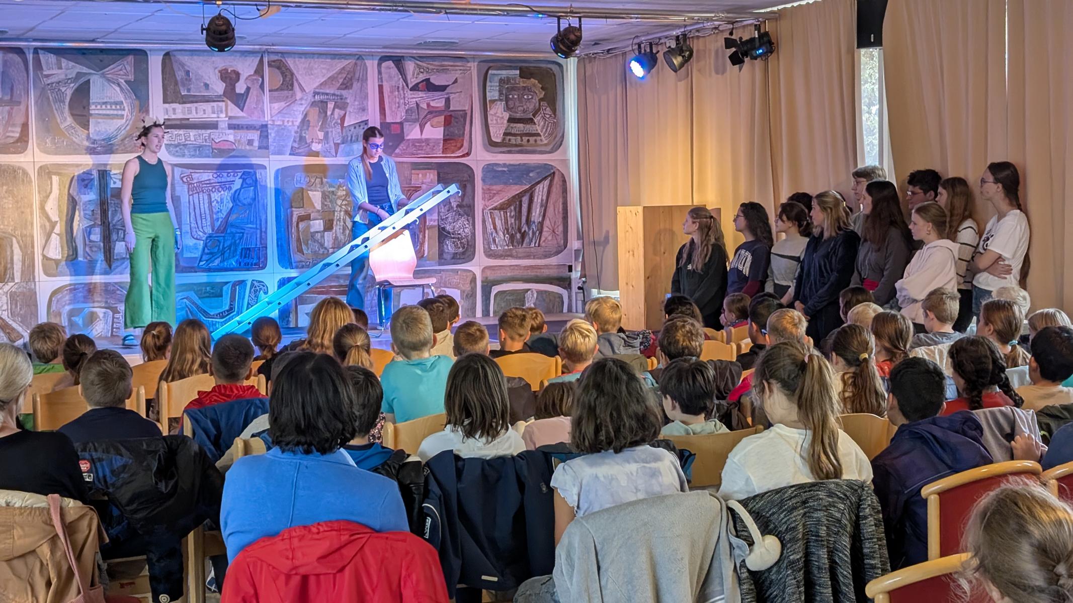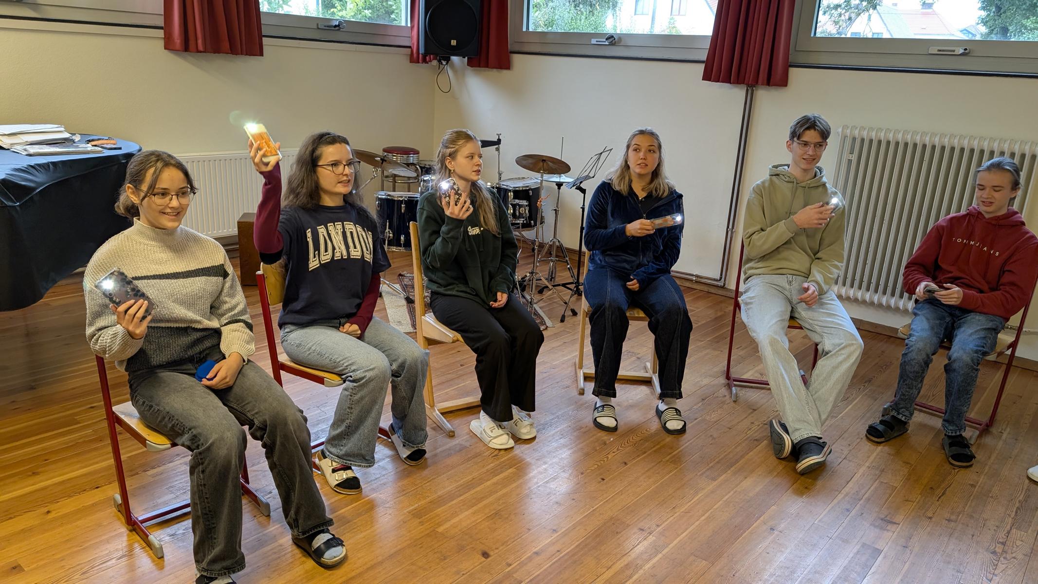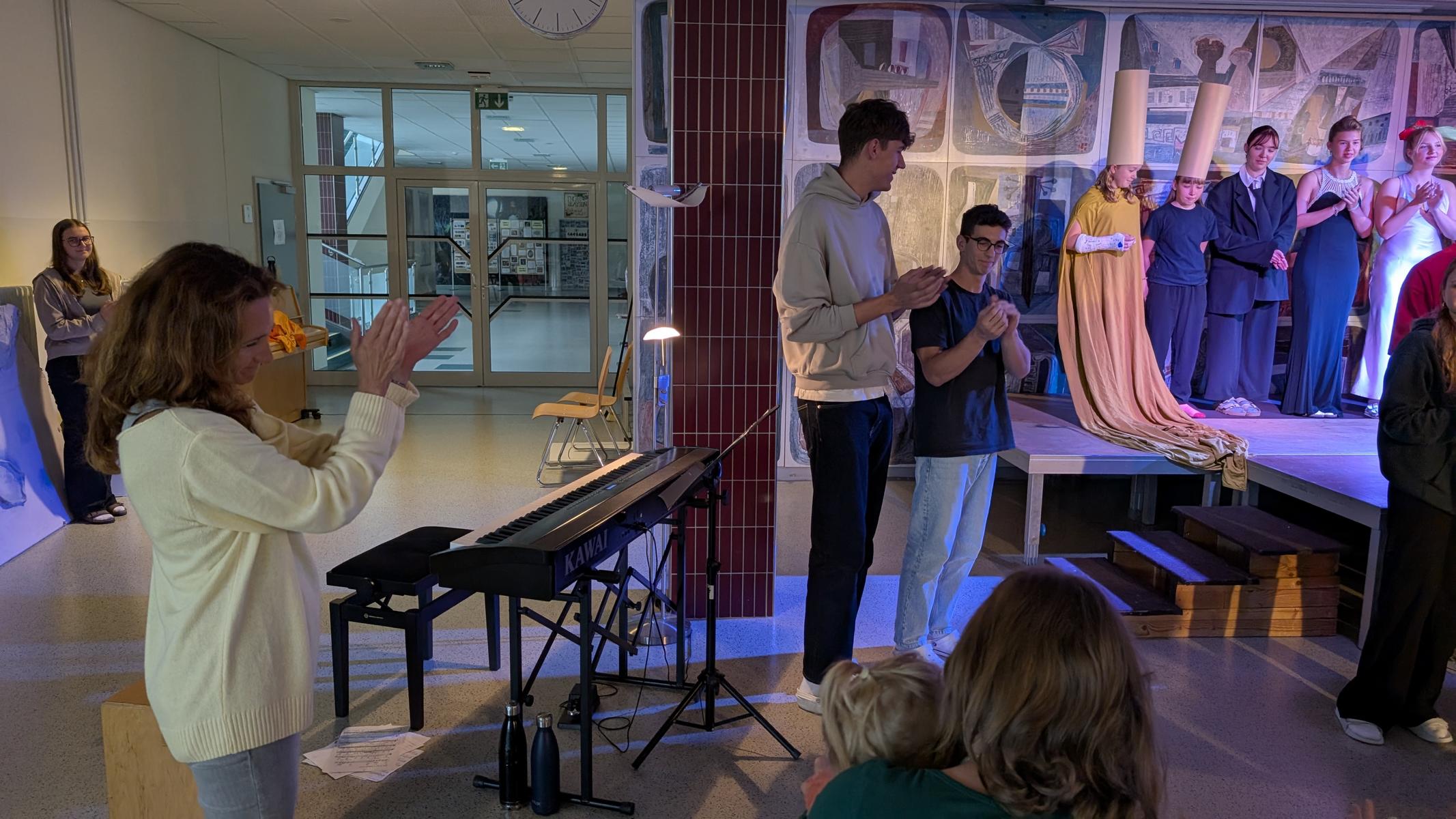 Musikalisch begleitet wurde die Inszenierung von stimmungsvollen Stücken der 8a und 8b mit Musiklehrerin Christiane Resch-Raab. Die Musik unterstrich eindrucksvoll die emotionale Reise des kleinen Prinzen und verlieh dem Stück eine besondere Tiefe.
