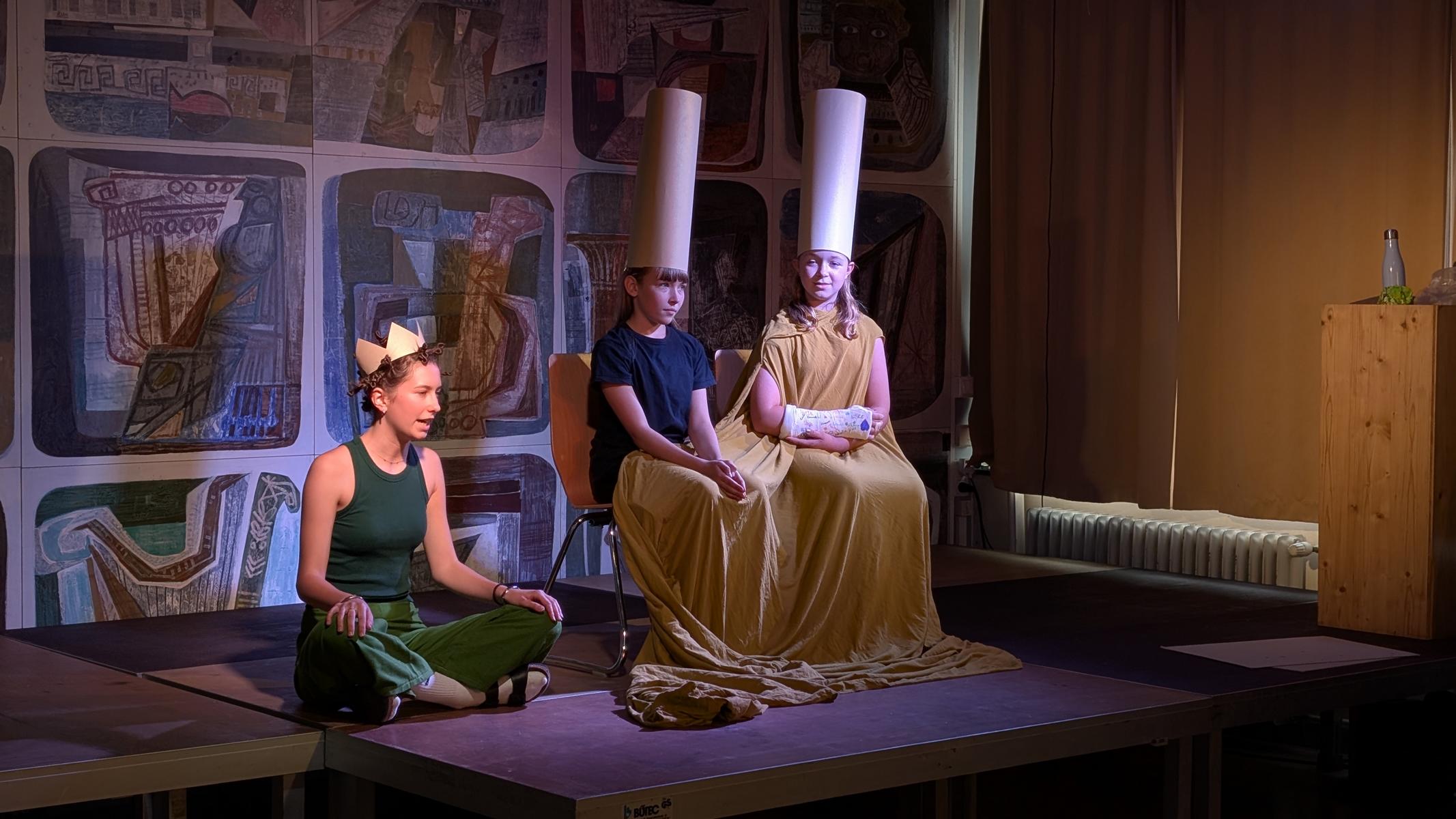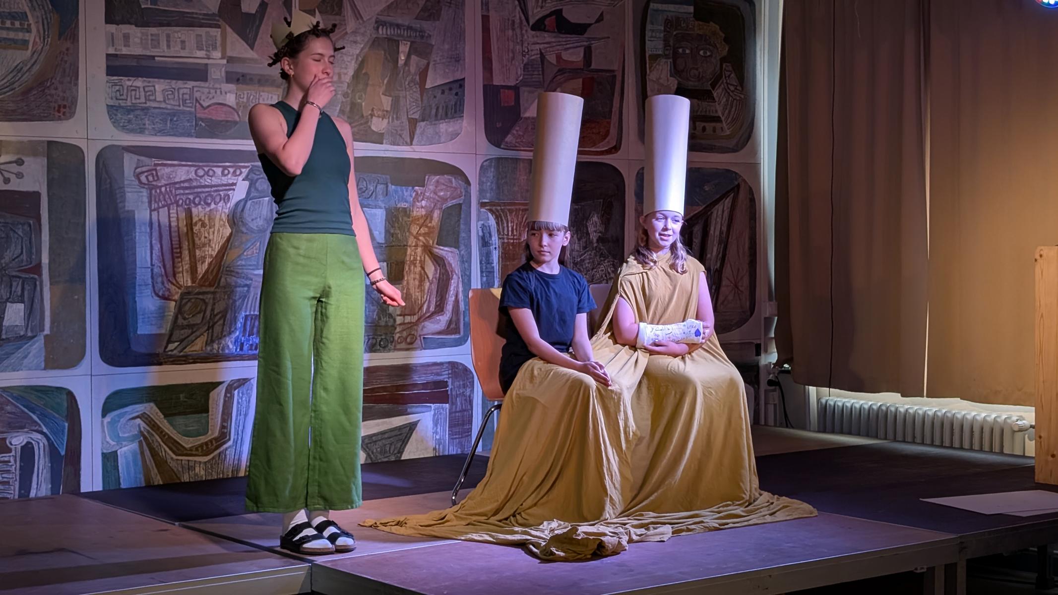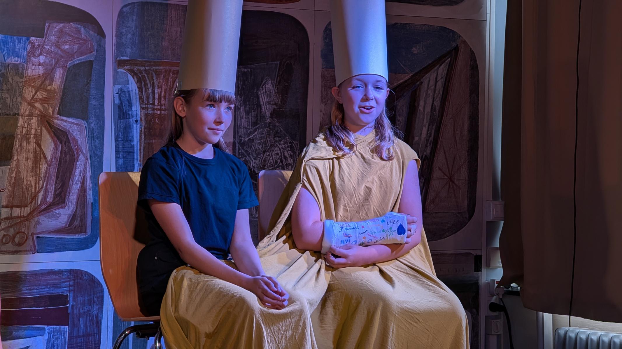 Unterstützt wurde die Klasse nicht nur durch ihre Kunstlehrerin, sondern auch durch zwei engagierte Schülerinnen aus der 3b, die mit Spielfreude und Einfühlungsvermögen das Ensemble bereicherten. Für die stimmungsvollen Kostüme sorgte Lehrerin Christina Wandl, die den Figuren mit viel Liebe zum Detail ein unverwechselbares Aussehen verlieh.