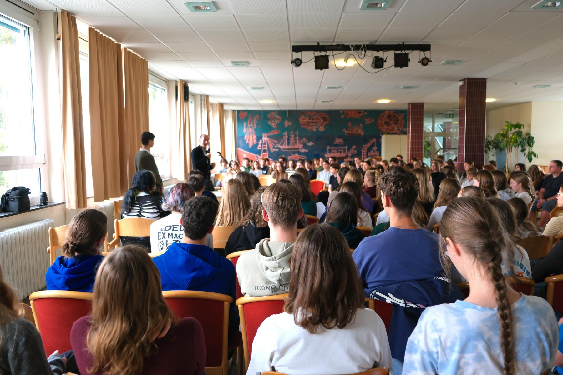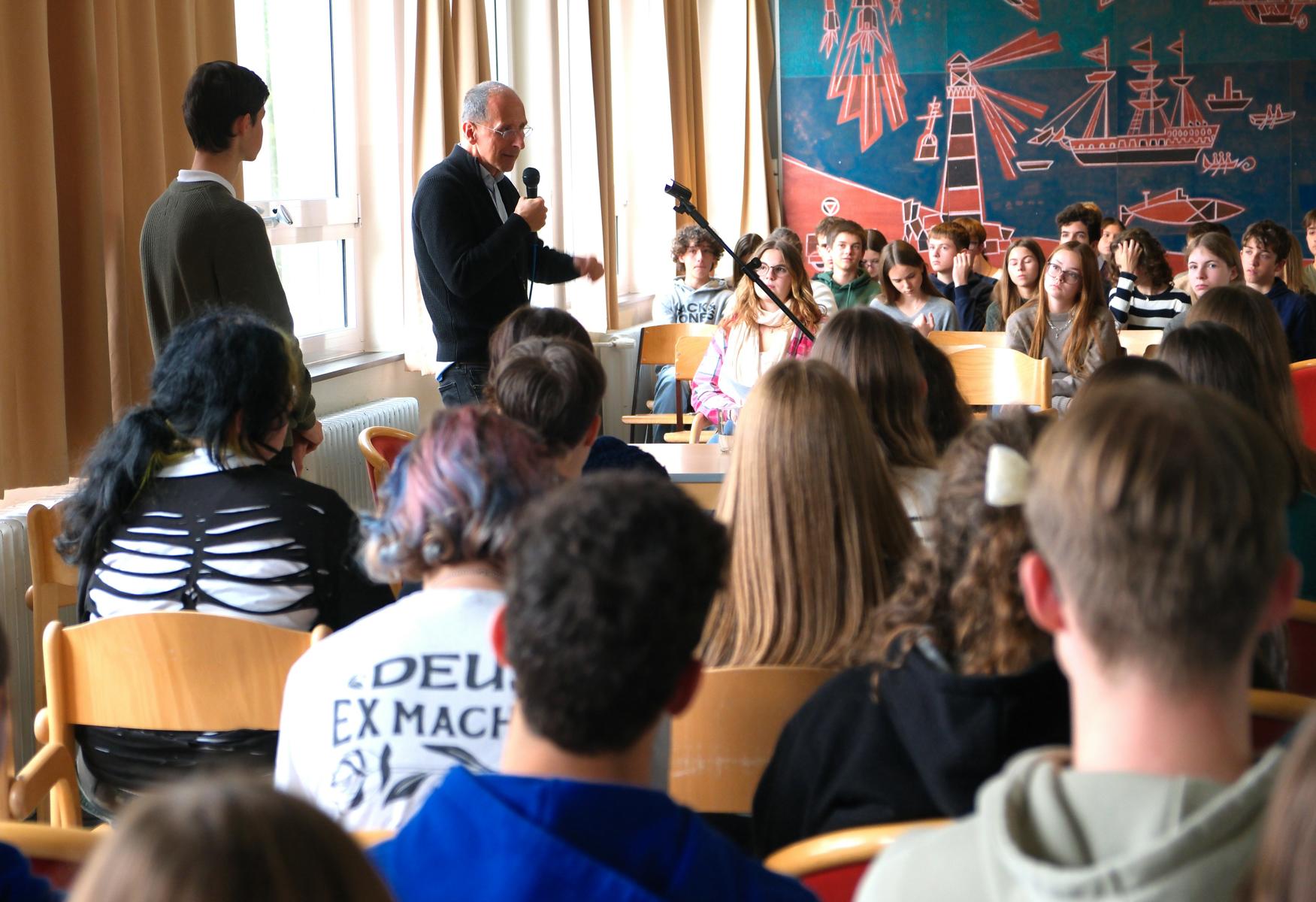 Alle Jahre wieder wird’s an unserer Schule politisch. Nach dem ZiB-Moderator Tarek Leitner im Vorjahr konnte Organisator Mag. Peter Schnaubelt heuer den Analysten der Nation, Prof. Peter Filzmaier von der Donauuniversität Krems, begrüßen. Im Rahmen von zwei Schulstunden, durch die Schulsprecher Leopold Grusch aus der 7b souverän führte, beantwortete der Politikwissenschaftler Fragen unserer Schüler:innen. Dabei ging es um Themen wie die Neutralität Österreichs in modernen Zeiten und Formen von politischer Kommunikation ebenso wie den Einfluss von sozialen Medien auf die Demokratie und die Umwälzungen in den USA unter der Präsidentschaft Donald Trumps. Prof. Filzmaier sprach mit großem Elan und dem ihm eigenen Witz und lobte anschließend an die Veranstaltung die Fragen und das Interesse der Jugendlichen.