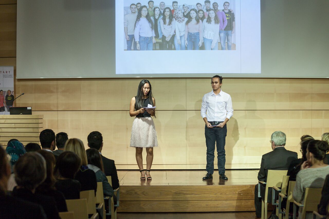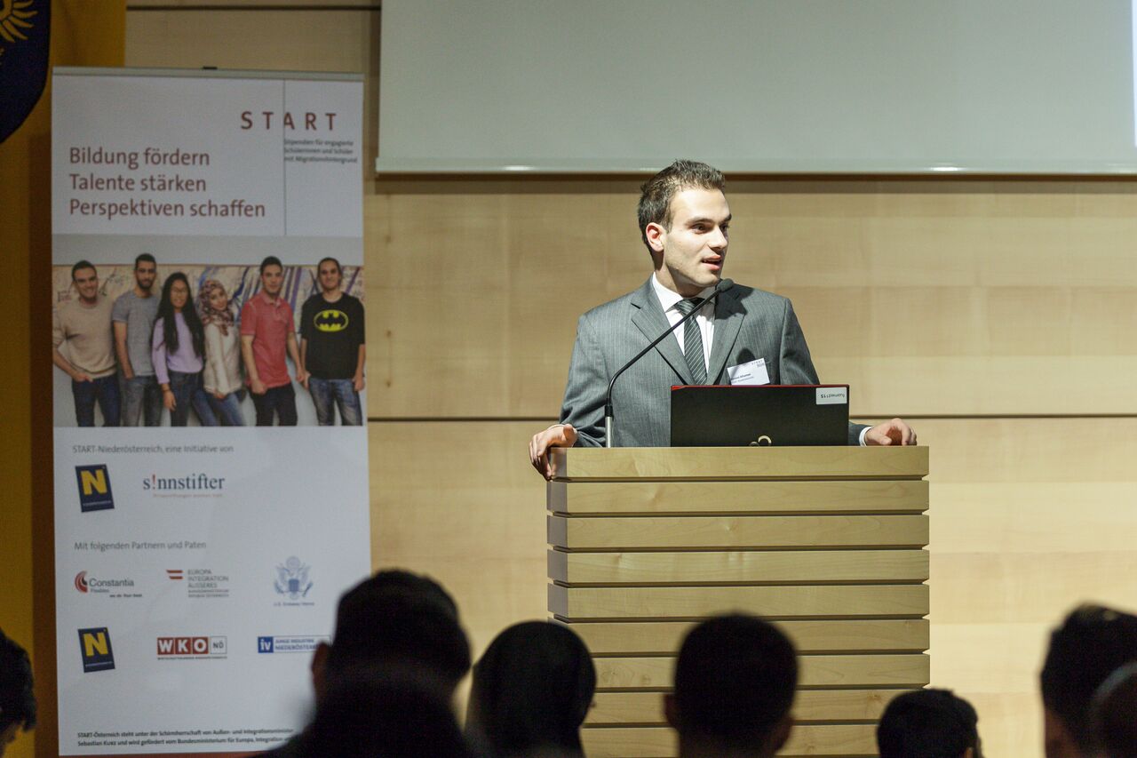 Taha Al Khashmany und Ahmad Alhamwi, zwei unserer Schüler, gehören zu den ersten in Niederösterreich, denen ein START-Stipendium verliehen wurde. Insgesamt zwölf engagierte Schülerinnen und Schüler mit Migrationshintergrund wurden am 24. Oktober im Julius-Raab-Saal des WIFI St. Pölten in das Programm aufgenommen, das ihnen ihre Ausbildung bis zur Matura oder einer Lehrstelle und somit den Weg in eine bessere Zukunft ermöglichen soll. Soziales Engagement und gute schulische Leistungen (abhängig von Aufenthaltsdauer in Österreich) zählen zu den wichtigsten Voraussetzungen der Aufnahmemöglichkeit. Das Stipendium enthält nicht nur finanzielle Unterstützung, sondern auch Bildungsseminare und Workshops zu diversen Themen. Die meisten neuen Stipendiatinnen und Stipendiaten sind erst in den letzten Jahren als Flüchtlinge nach Österreich gekommen. Sie stammen aus Afghanistan, Syrien, Irak, Iran, der Mongolei und Somalia und haben nun in Niederösterreich eine neue Heimat gefunden.